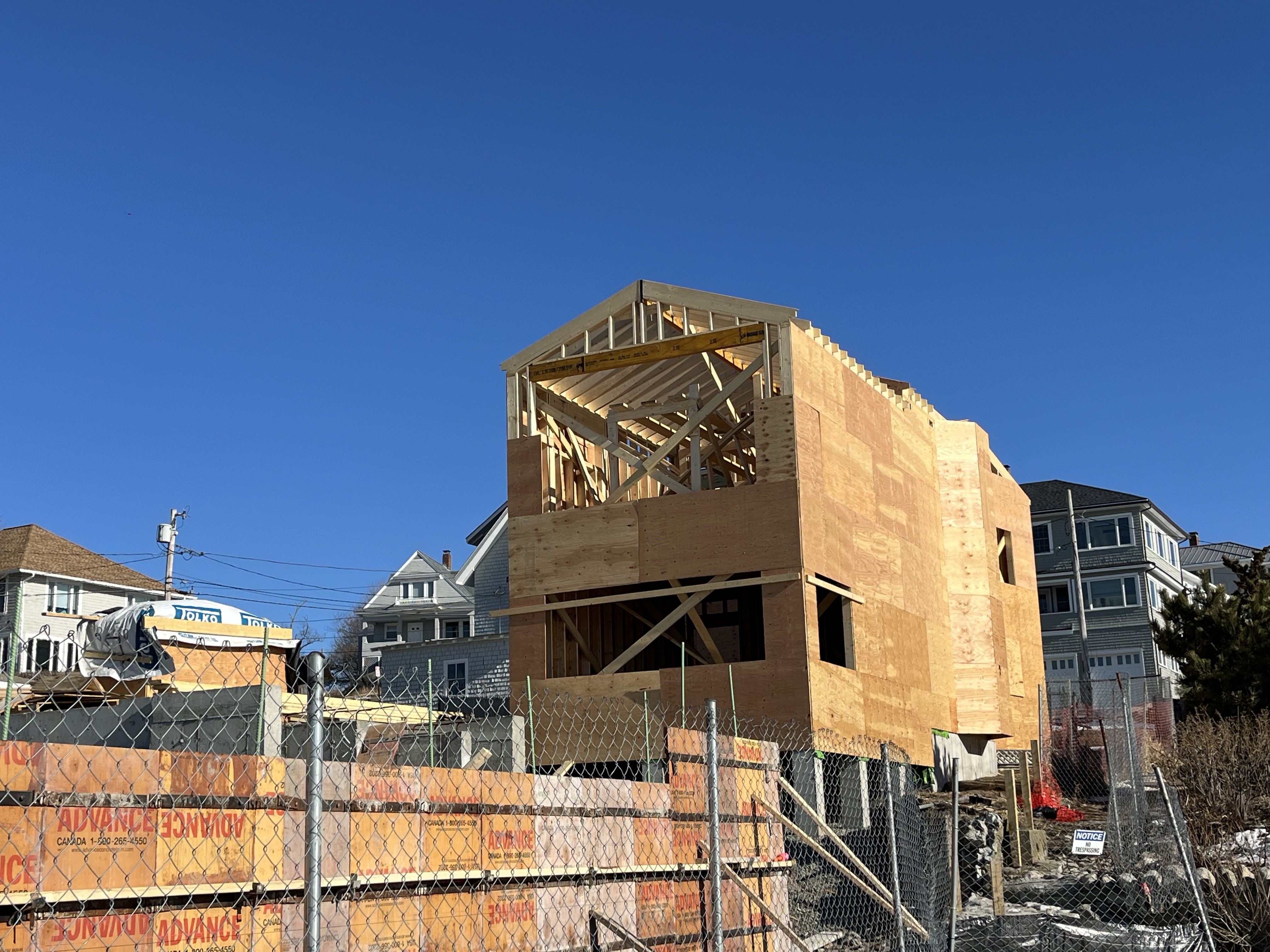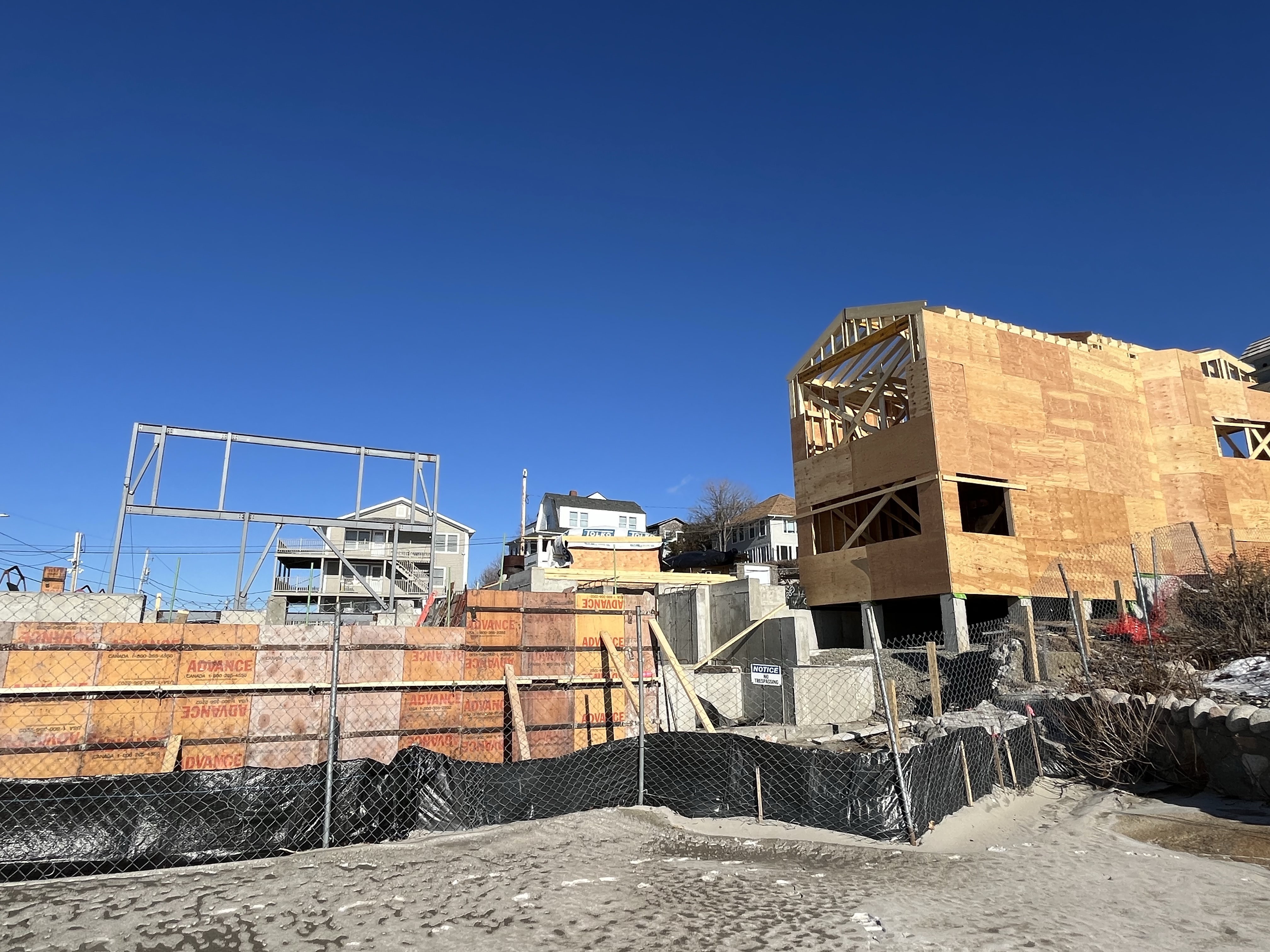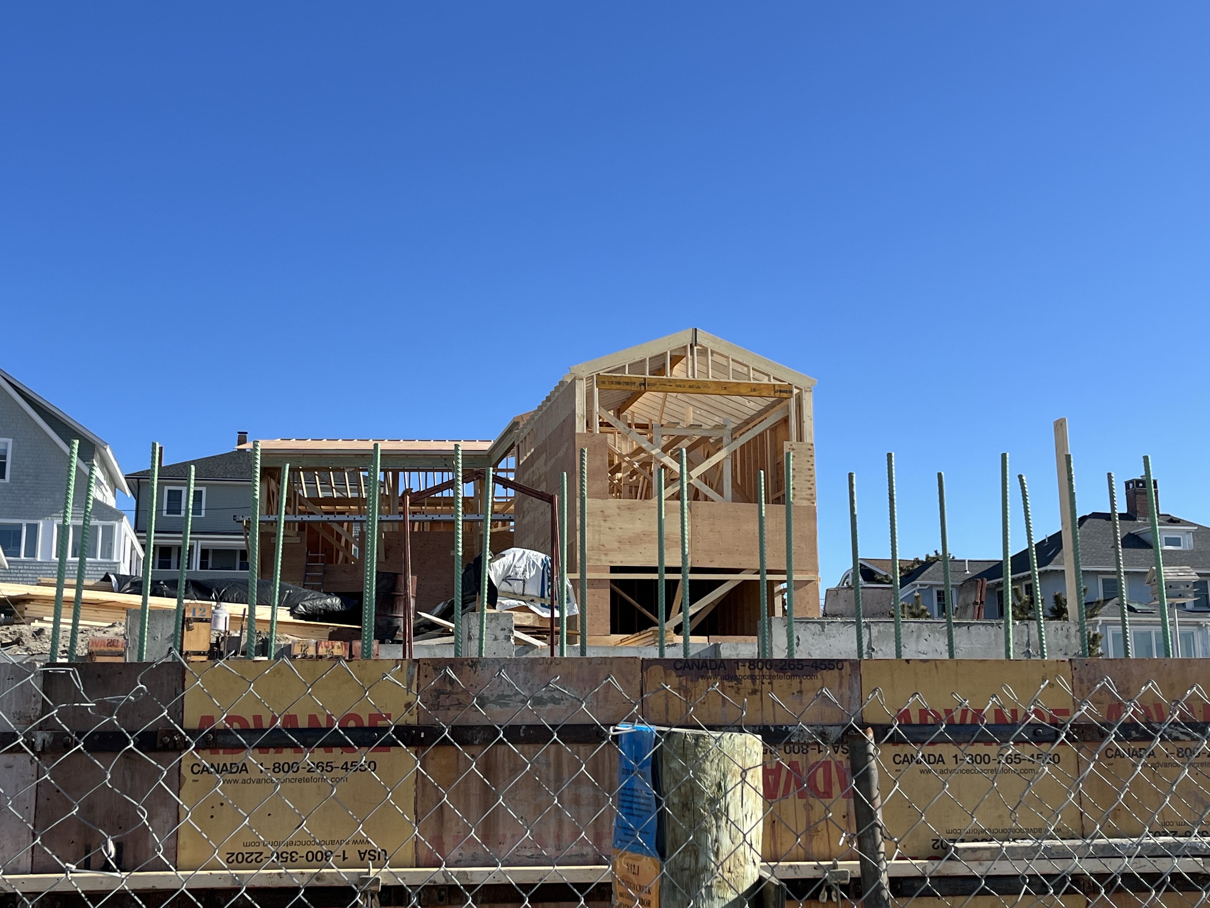 We rode over to check on the progress of the former Good Habor Beach Inn on Salt Island Road recently. Despite the cold and wind that day, the work was continuing at the new Inn at Good Harbor Beach. I understand they plan to re-open sometime this year following the complete reconstruction you see here: “blending modern luxury with its storied past to create an unparalleded guest experience”. We look forward to the results.