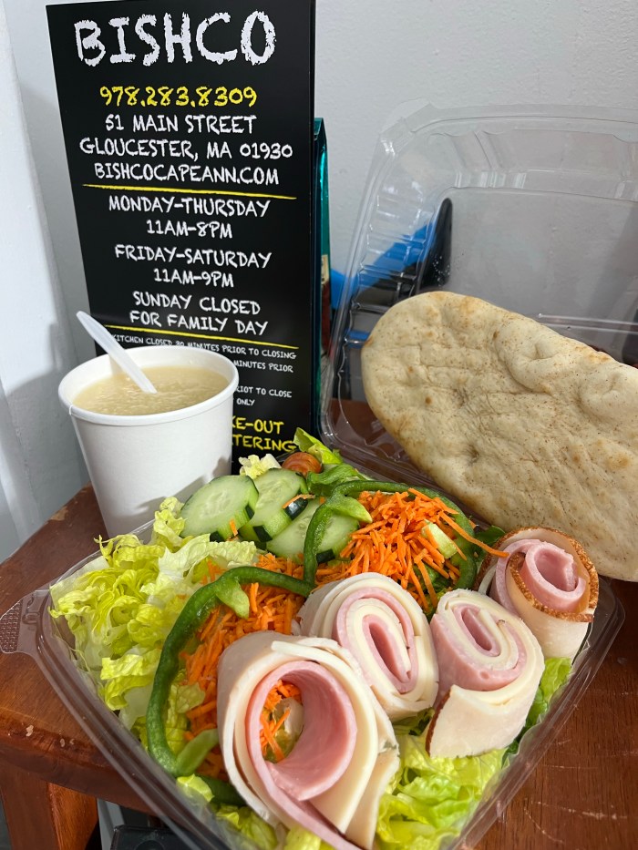 I spent some time at the shop recently (44 Main St for those of you that somehow haven’t heard) so was looking for lunch. I have mentioned how totally blessed we are to have so much available within easy walking distance. This time, I decided on soup and salad from Cafe Bischo on Main St.: lemon chicken rice soup and a chef salad. Enough for 2 meals so the pricing is extra reasonable. Perfect for a cold winter afternoon. Thanks Bischo!