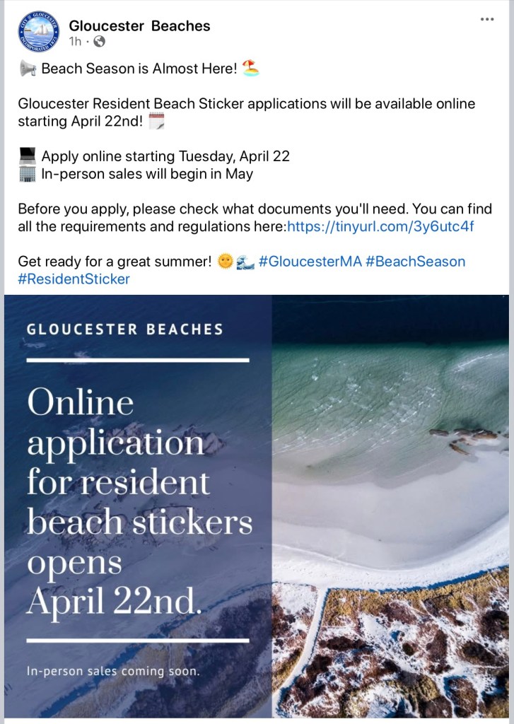 Screenshot from the Gloucester Beaches Facebook page:
