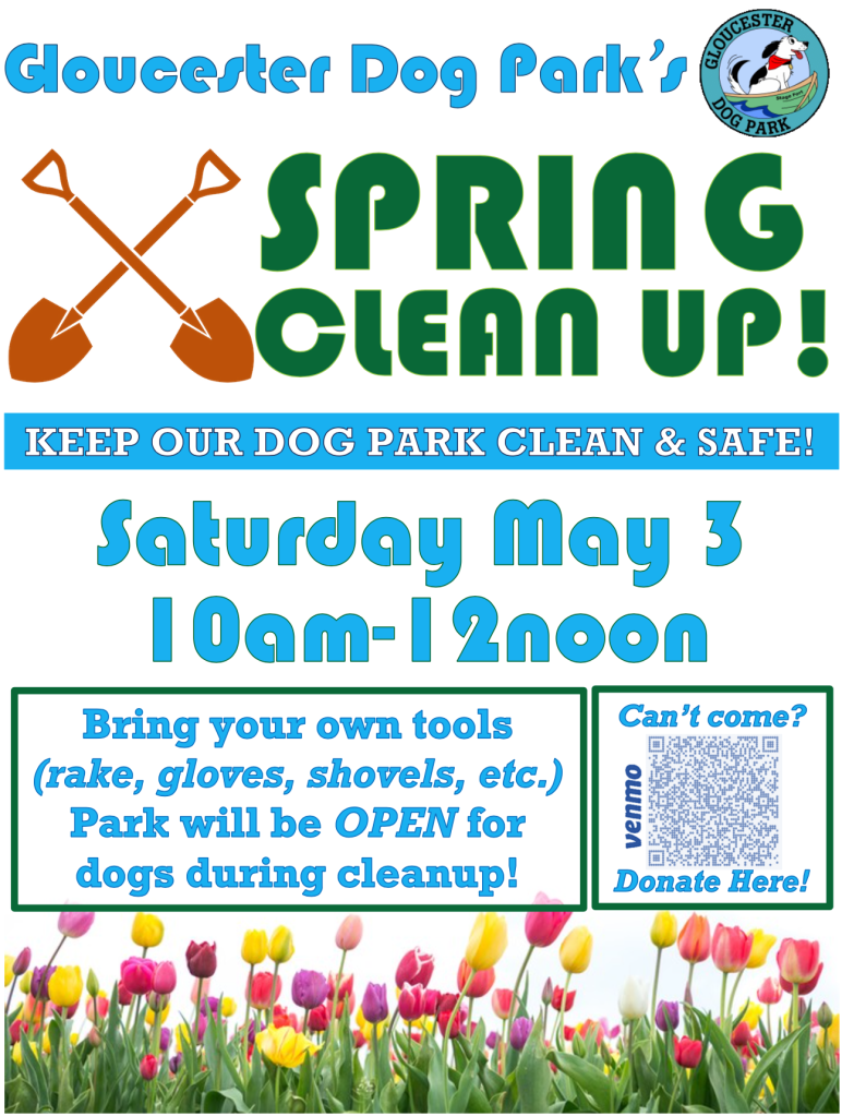The Friends of the Gloucester Dog ParkAnnual Clean-Up Day!This Sat, May 3rd, 10-12:00 AM! All are welcome!!!