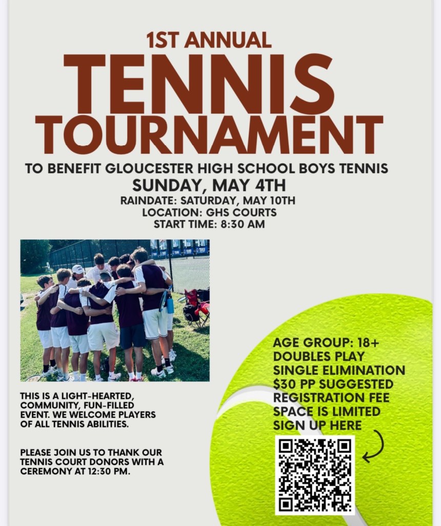 Due the the potential inclement weather this weekend the Fundraiser Tennis Tournament & Donor Appreciation Ceremony will be be rescheduled to “rain date” Saturday May 10th