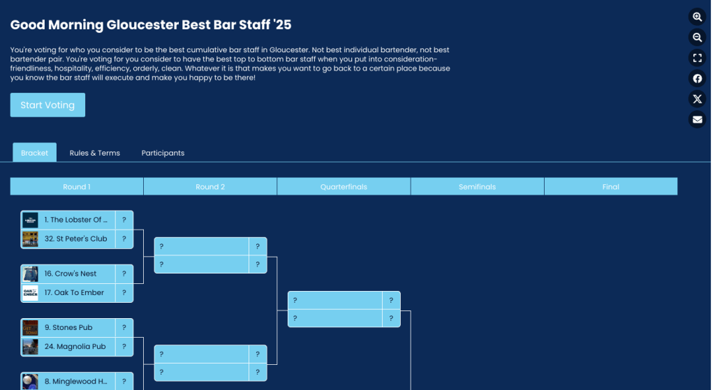 The Final Bracket In the Gloucester’s Best Bar Staff Has Been Set With The #1 seed @thelobsterofgloucester (seeding determined by number of community nominations) blasting its way through to the final tallying large margins of victory along the way facing off against #7 seed @seaport_grille which has plodded its way through the tournament in the last three rounds with an average margin of victory of 1.5%. Will The Lobster continue its wrecking ball run or will the fans of Seaport Grill rise up to take down Goliath? Only time will tell. Voting has begun and runs through Wednesday morning at 5:30AM! Vote for your favs at http://www.goodmorninggloucester.com Good luck!!!