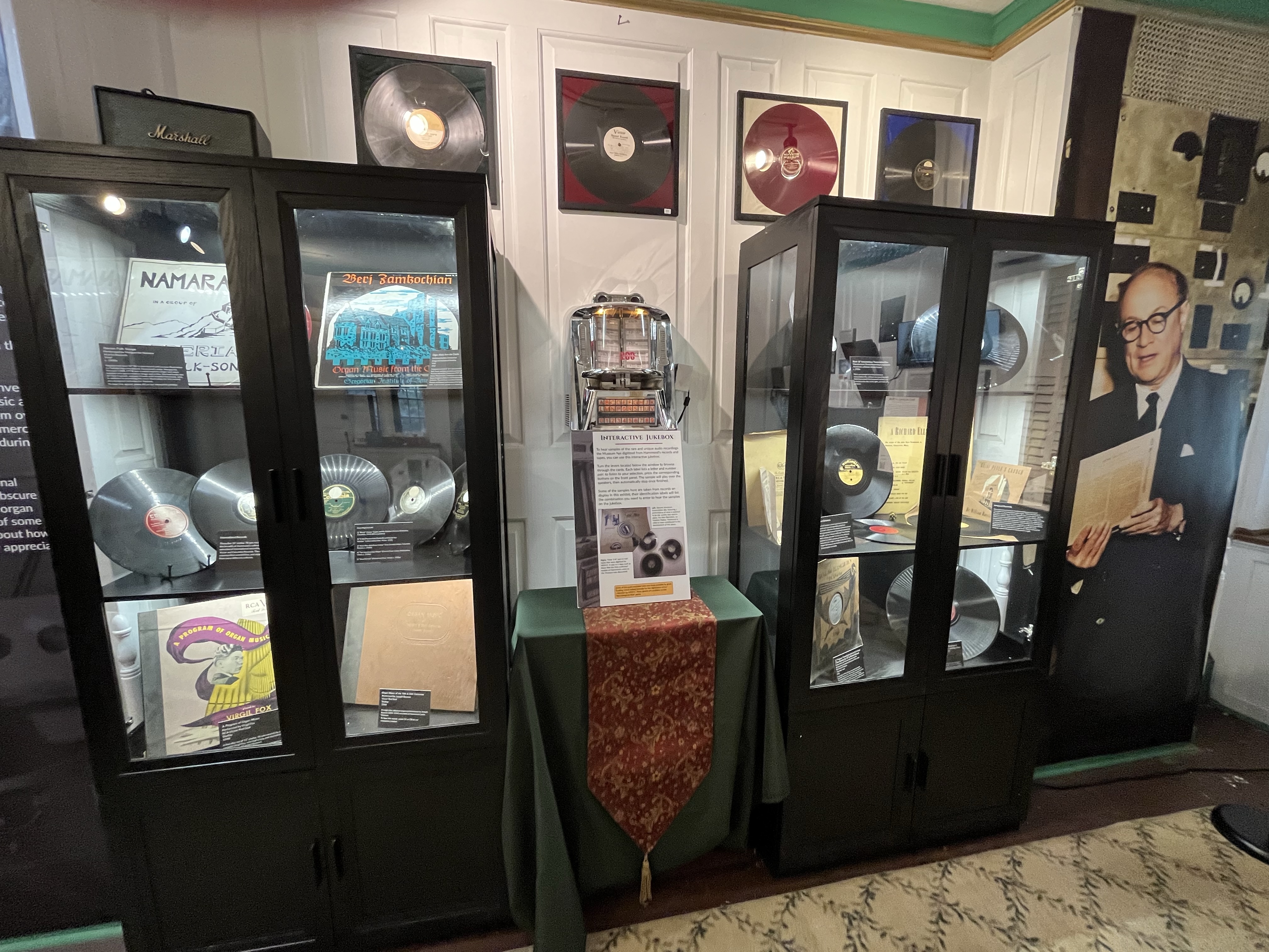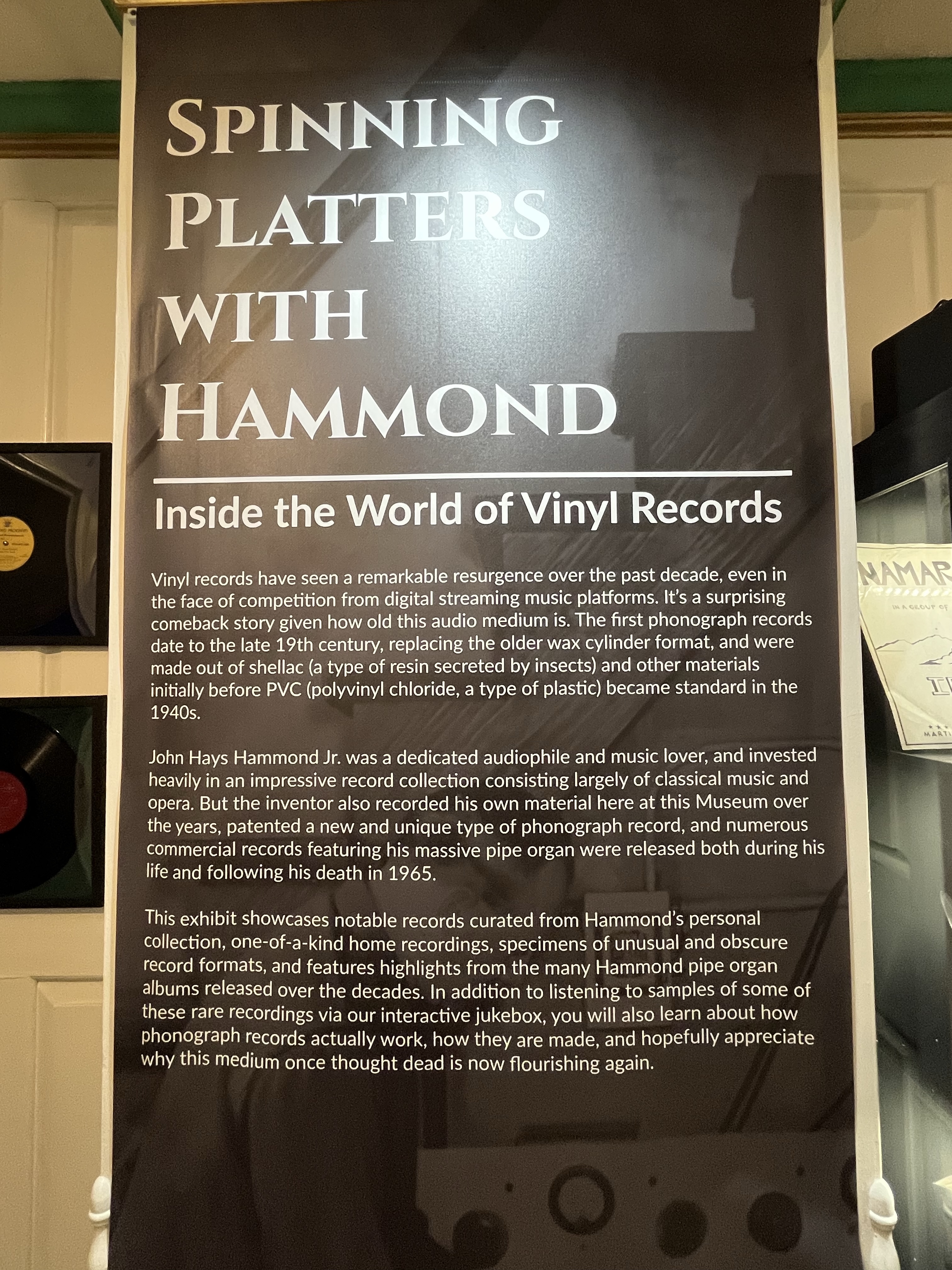 Did you know that the Hammond Castle offers free admission to Gloucester residents on Tuesdays? It happened to be rainy this past Tuesday, so we decided to take advantage of that offer to go take a look at the special vinyl records exhibit currently running at Hammond Castle (Hesperus Ave). We were not the only ones taking advantage of being inside during inclement weather as there were plenty of other visitors on hand while we were there. If you haven’t been in a while, maybe Tuesdays would work for you to plan a visit sometime soon! The vinyl record exhibit is fascinating.