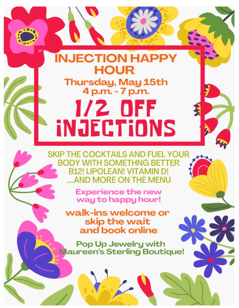 All injections ½ off! Bring a frined!