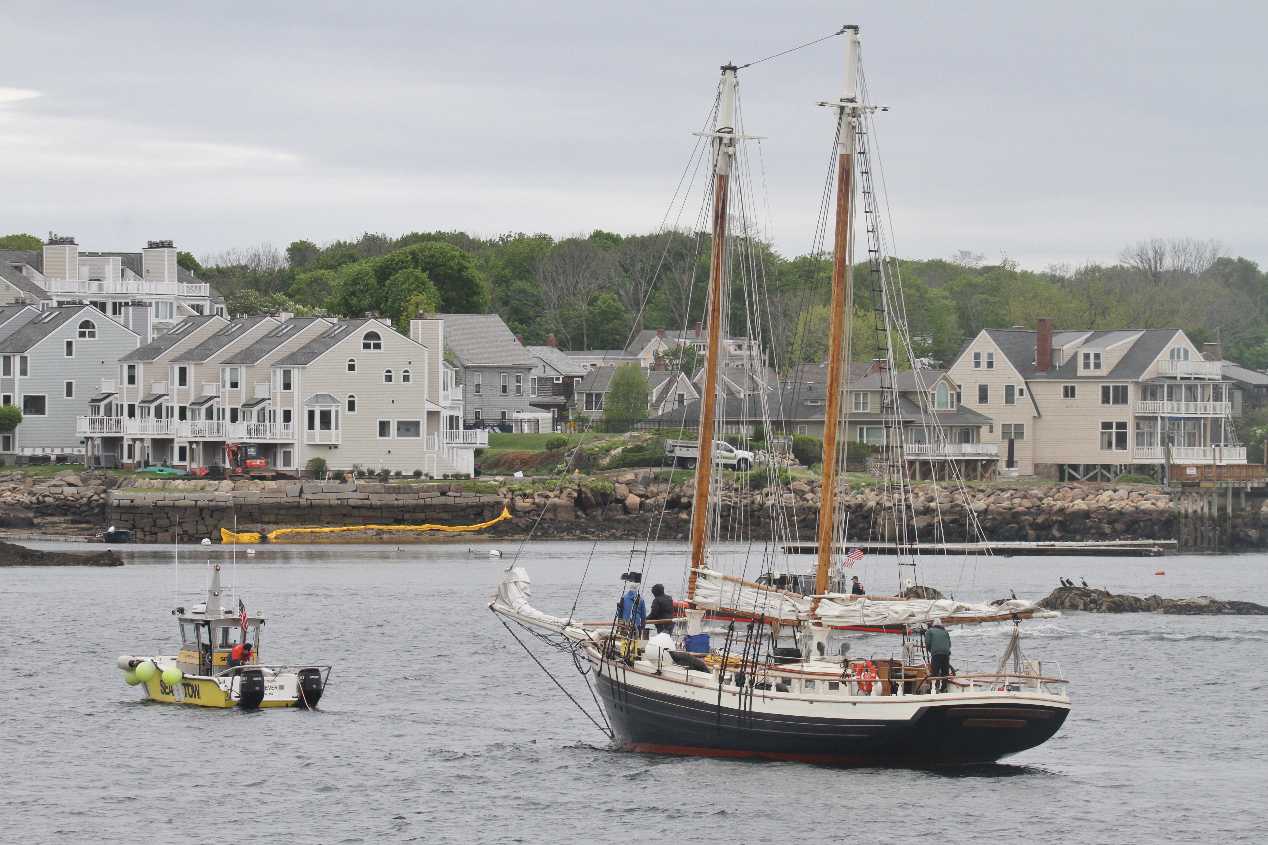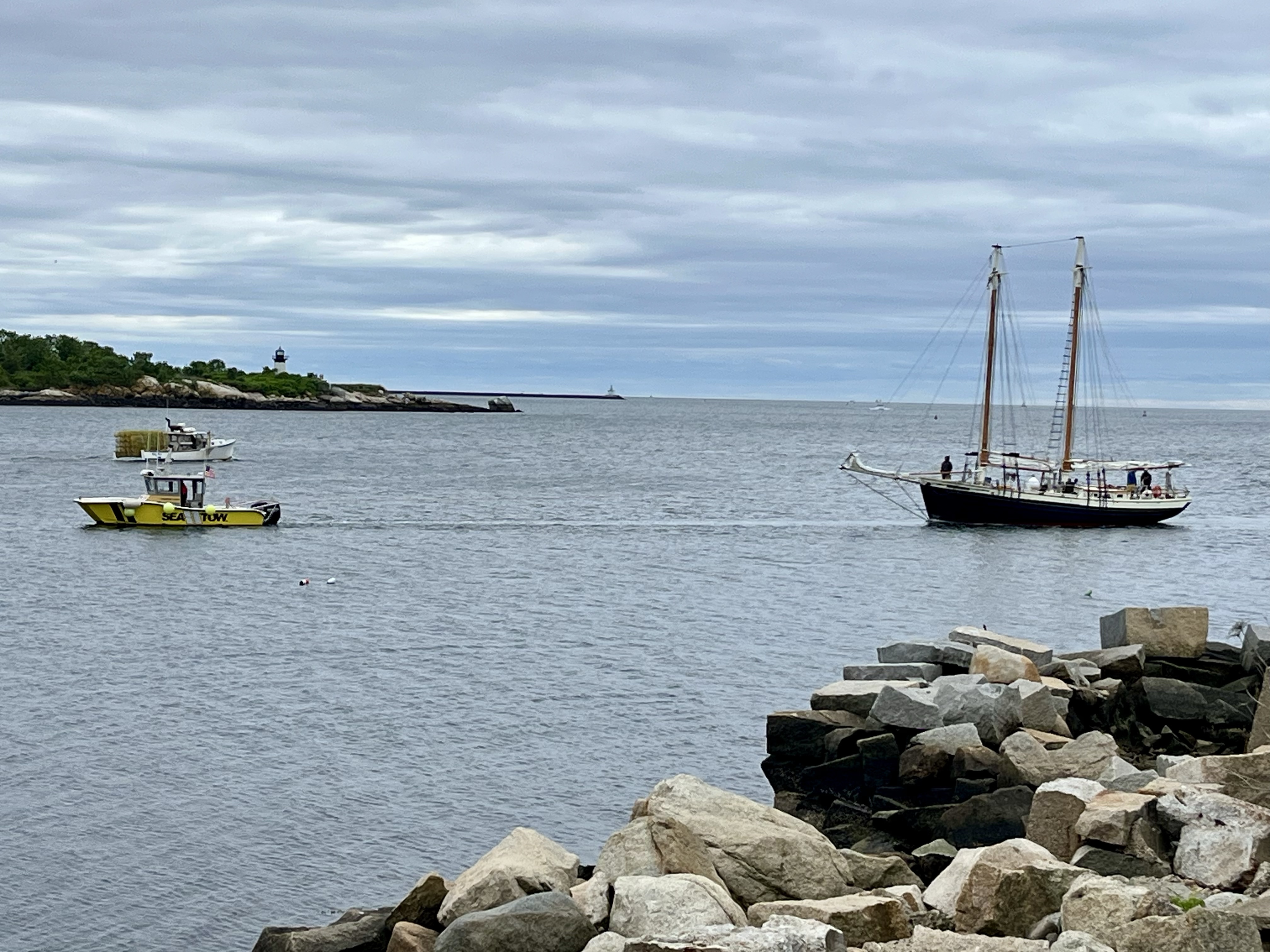 We happened to notice the Schooner Liberty Star, of the Liberty Fleet of Tall Ships out of Boston being assisted into Gloucester yesterday. We followed the progress from entering the harbor to the Marine Railways on Rocky Neck. I assume she’s in for some rehab and spiffing up. Welcome to Gloucester! I am always thrilled to see schooners in our harbor.