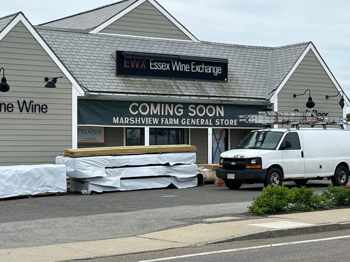 We noticed a new sign on the former Essex Wine Exchange on Main St in Essex announcing that Marshview Farm General Store would be moving in soon! Sounds promising!