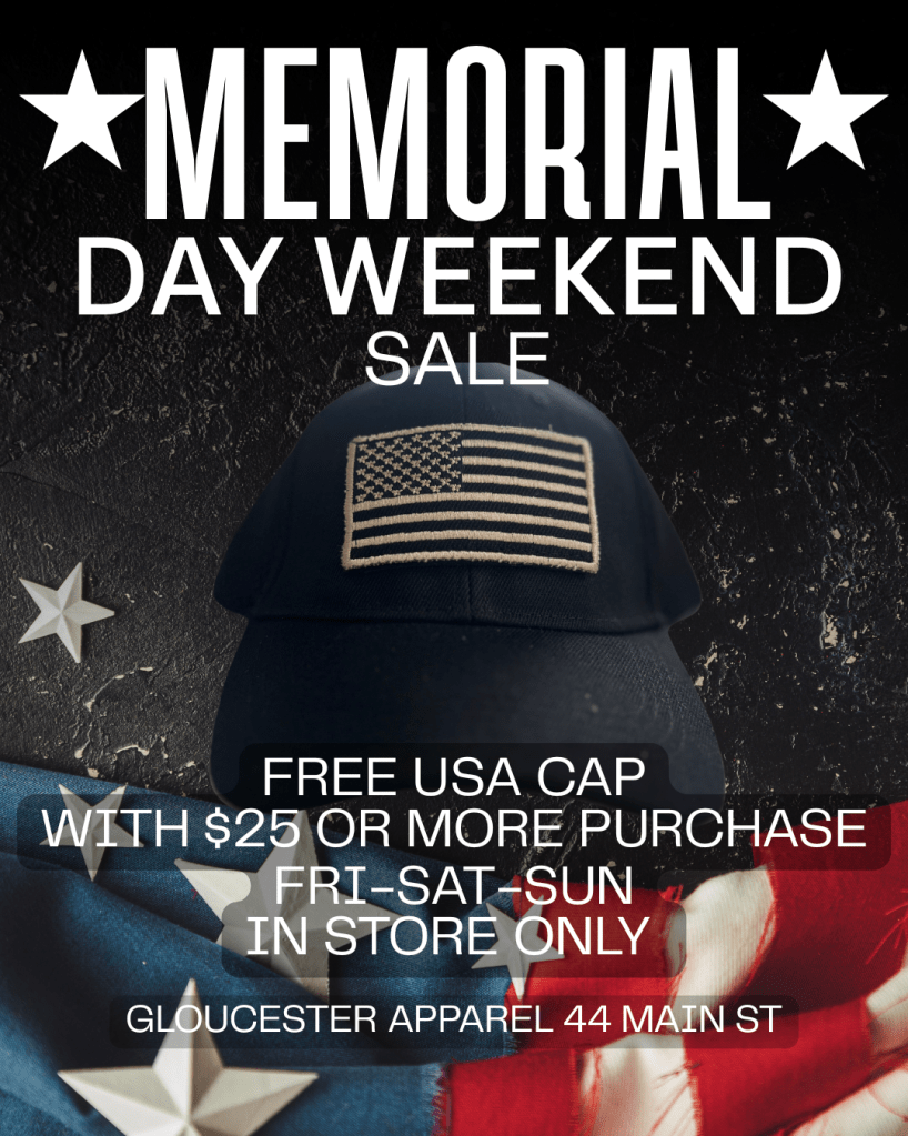 In store only. Open Saturday 11-5pm, Sunday 11-3! Make it easy on yourself, easy shopping for Graduation, Fiesta and Father’s Day! Fiesta Caps (while they last), SPF Hoodies, Lobster Polo Shirts, Gloucester Drinking Town With A Fishing Problem, Don’t Feed The Locals Seagull Shirts, 01930 Caps, Nautical Chart Coozie Sets! We have it all to make your life easier and set your gifts apart with our local flair!