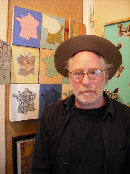 Matthew Rose graduated from Brown University (1981) with a degree in Semiotics/Linguistics. Influenced by Americans Ray Johnson, Jasper Johns, Joseph Cornell and a handful of French surrealists, he has created a rich life as a visual artist, author (both as journalist and novelist), and traveler/curator. Rose has become renowned for his collage work and prefers paper—“its texture, how it absorbs or not paint, how it rots.” Many of the materials Rose uses come from his walks of the Paris streets. “There is a sensibility here [in Paris…] an openness. It’s easy for me to work here. The street gives me a lot of stuff.” Most any day of the week, Rose can be found in his studio near Montparnasse, manipulating paper, wood, canvas, but has been seen trekking the world, with projects and shows taking him to Israel, Sri Lanka, USA, and Mexico.