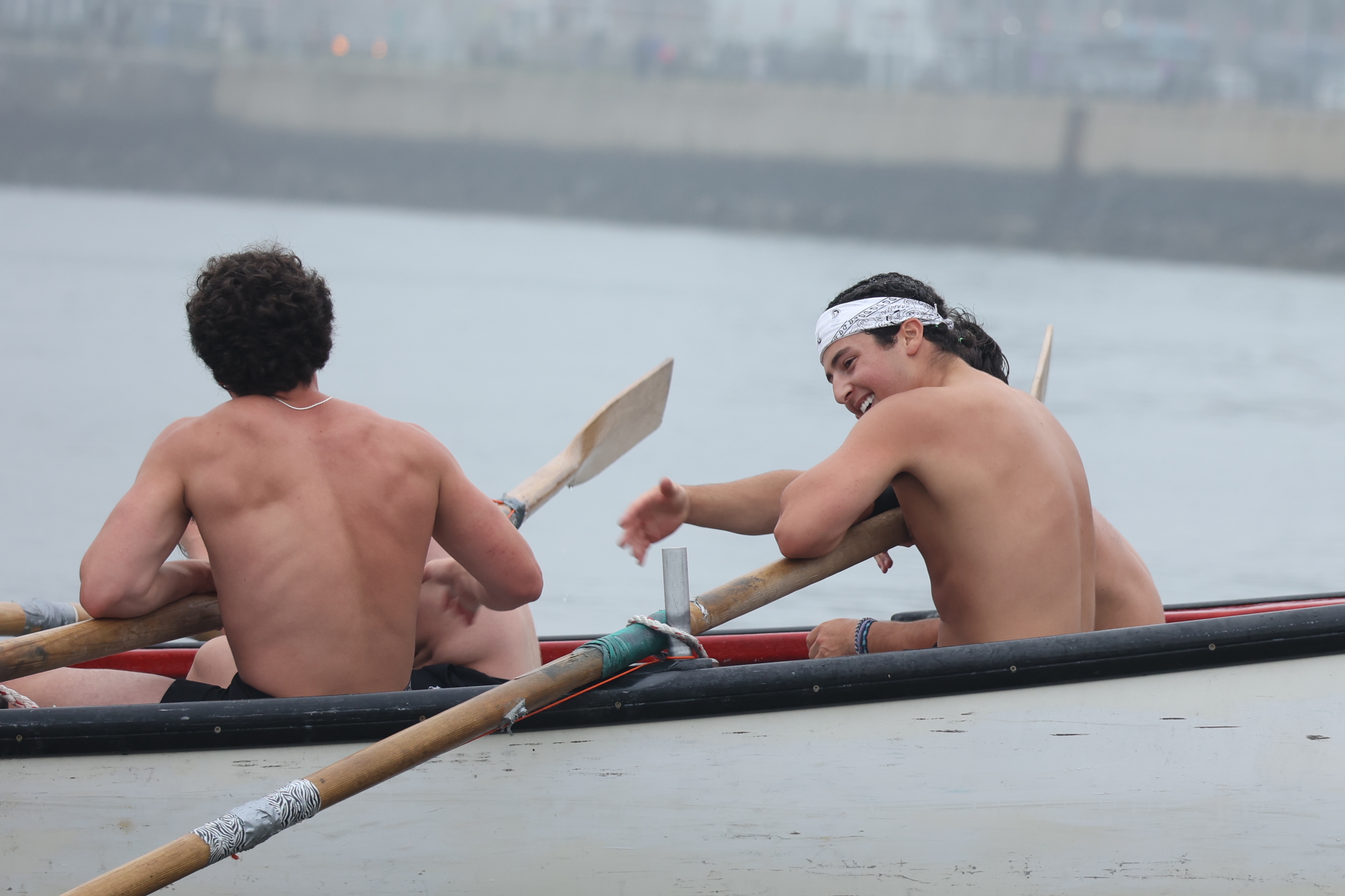 In the last sporting event of the night, three junior mens seine boat teams raced in the semi finals for a spot in the finals to be held today Sunday. These teams included Many Men & Men (AJ’s Gang); JJ’s Gang (Magnolia 525) and the Islanders. Magnolia 525 prevailed to face Tonno and Balbo’s Gang tonight. The fog and light drizzle made the conditions difficult for all involved but all teams put on a good show for their fans and families waiting on the beach. Congratulations to all!