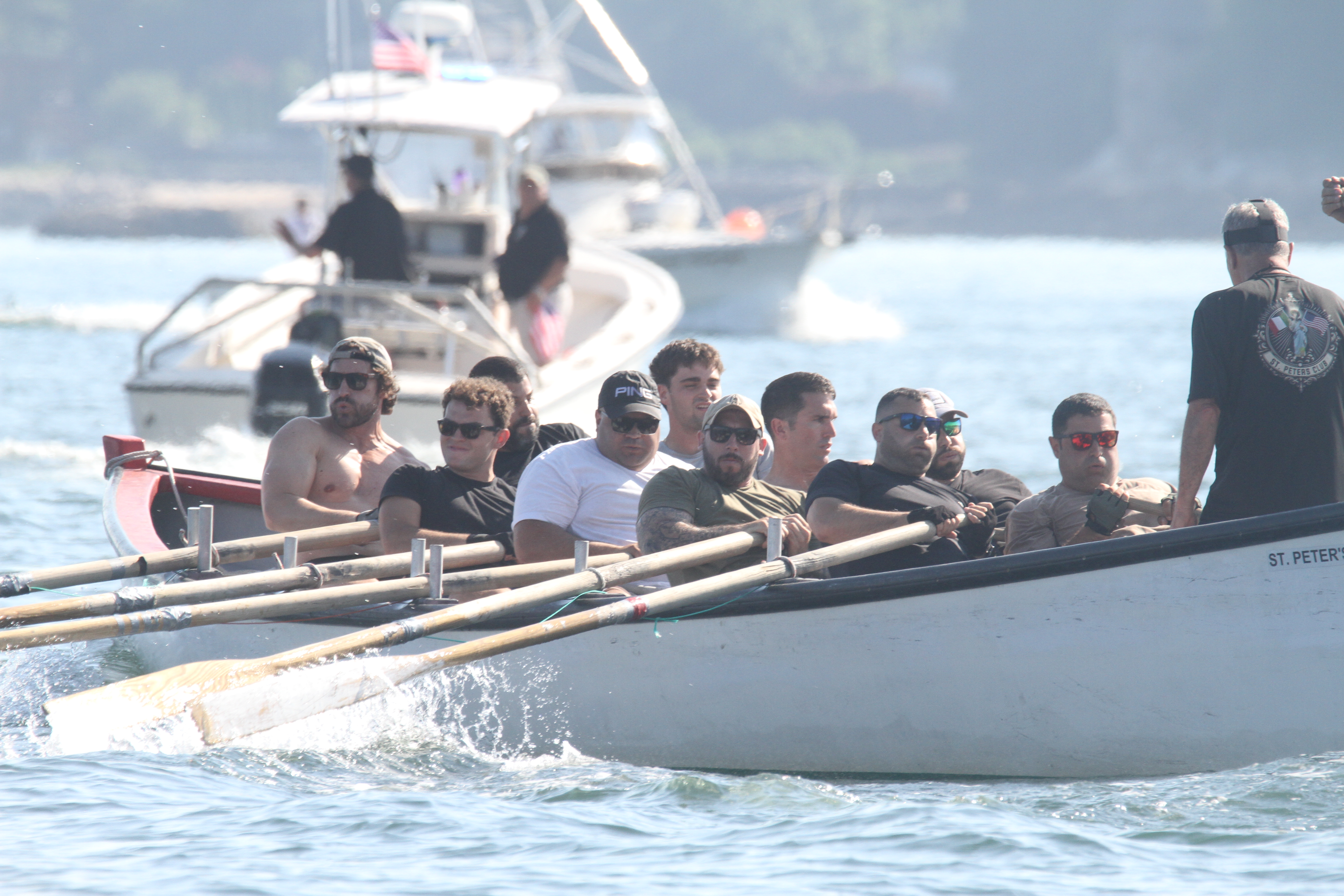 Three heats were held last night from Pavilion Beach to determine the 3 semi finalists for Saturday’s Seine Boat Senior Mens Race. Midnight Hammer/The Merger, Andys Gang and Kaos won their heats and will proceed to Saturday’s semi finals. The other teams included Impact, The Cut and Liquid 128. It was a great night for the competition and each team well represented their class and Fiesta tradition.