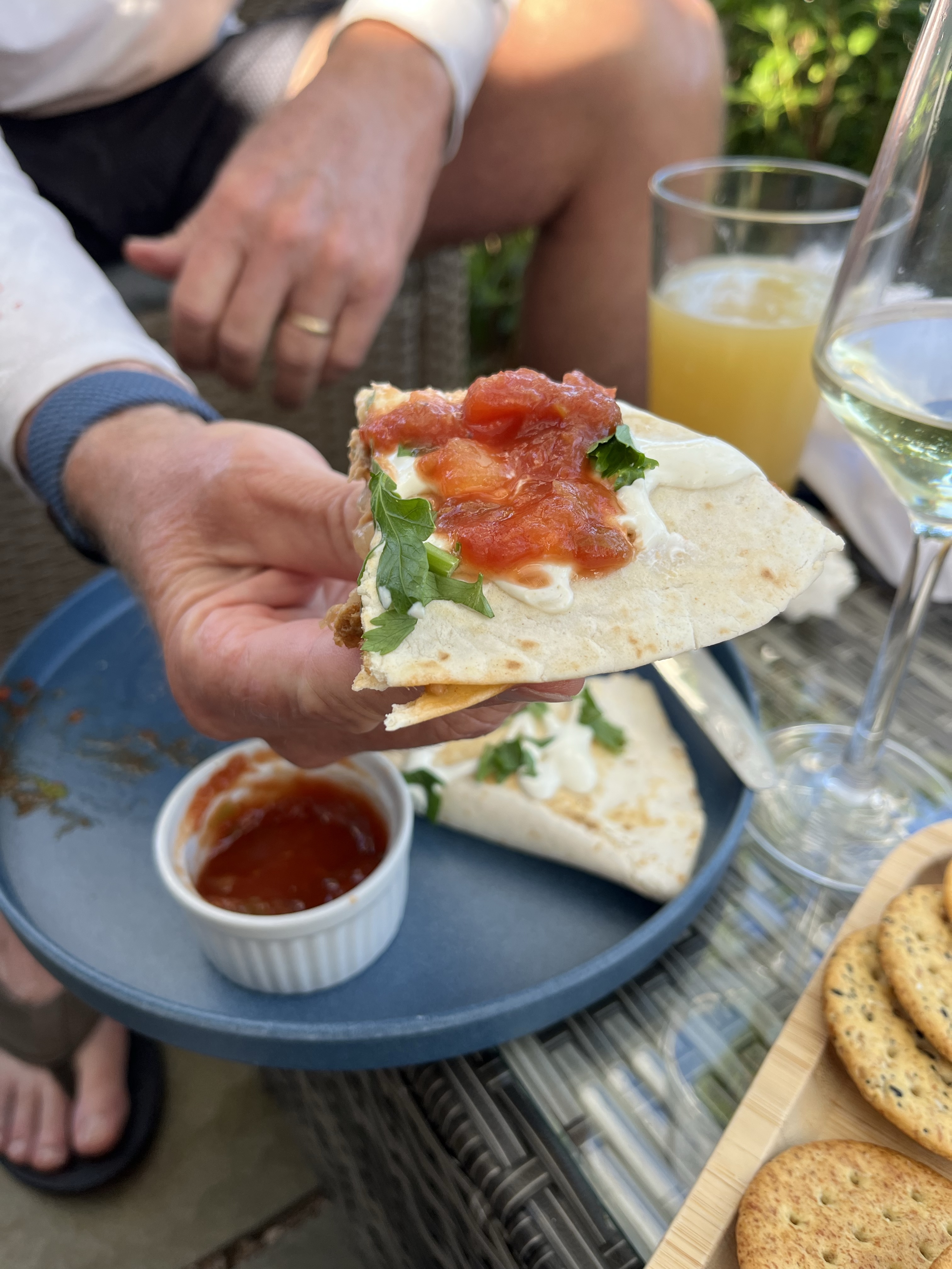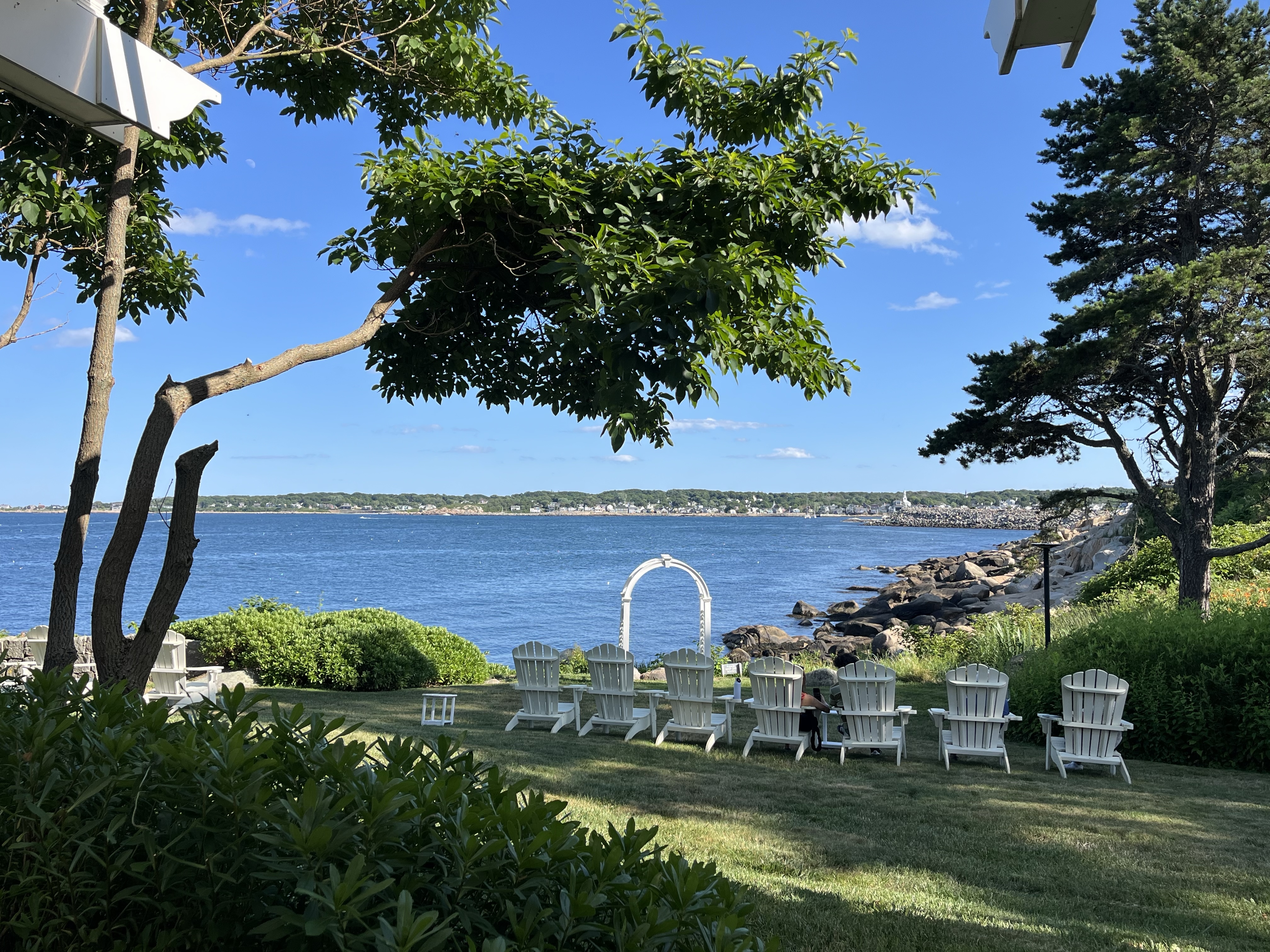 Our sister and brother in law visited recently and stayed in the Bulfinch House at Yankee Clipper Inn. We decided to check out the Captain’s Compass Bar on the grounds of the Yankee Clipper Inn on Granite Street in Rockport. They were super pleased with their experience there and we enjoyed an afternoon of drinks and snacks on the lawn. The bar is open summer weekends only Friday 4-8 PM; Sat and Sun 2-8 PM. Drinks and snacks are available from friendly efficient servers such as Cam. Pictured here you see prosecco, mojito, turkey panini, cheese and fruit plate and quesadilla. It was just right for the afternoon we were there visiting. Jim and I will plan to go back and take friends!