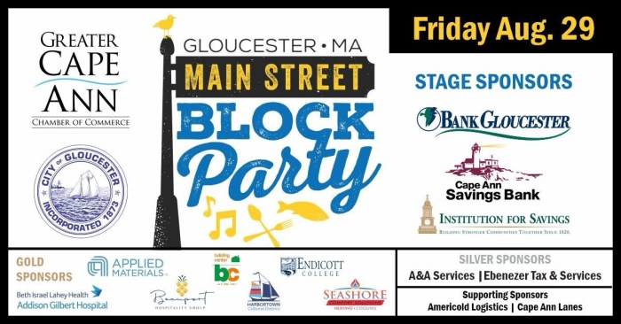 Main Street is the place to be on Friday, August 29, from 6–10 PM, for the final Gloucester Block Party of 2025!