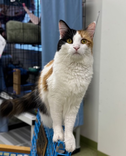 Meet Patches, this adorable 2 year old girl who just wants to hangout with her people. This sweet gal is a package deal and must go home with her sibling Pumpkin. Not only will Patches win you over with her pretty markings but her personality will shine bright as well. She loves getting chin scratches and enjoys following the humans around while they clean her condo here. Patches is a special needs adoption because she originally came from a multi-cat household where some of the other cats were diagnosed with kidney disorders that may have a genetic component. Patches has not shown any signs or symptoms and may not be genetically related to the previously affected cats. If you believe Patches and Pumpkin will be great additions to your family, apply online today! Patches & Pumpkin are now part of the extended stay club, and their adoption fee has been waived to help them find their forever home sooner.