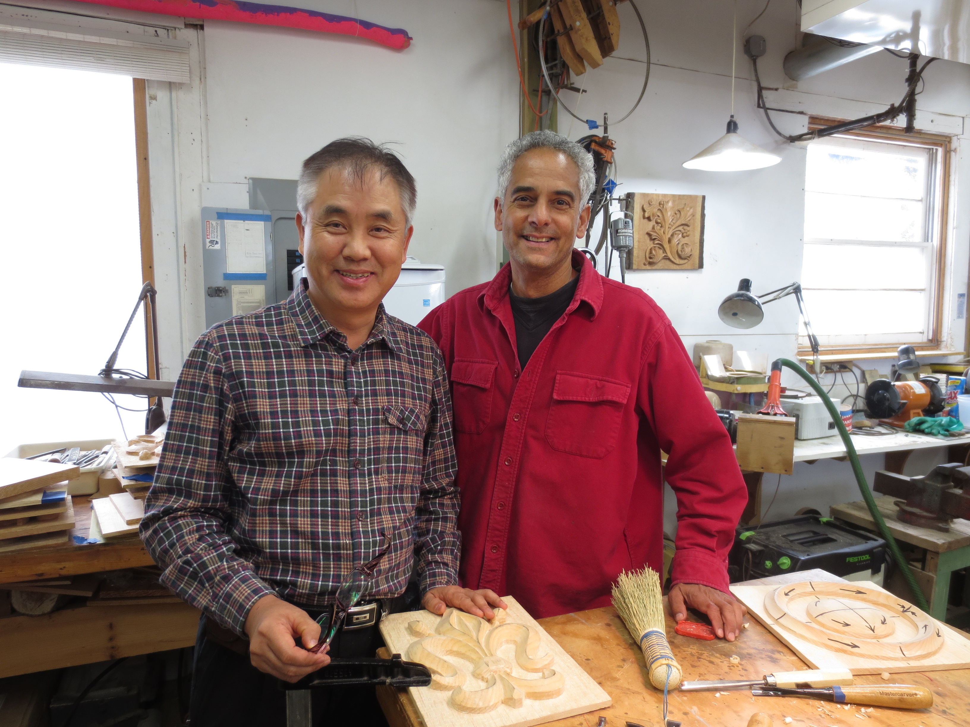 Jason Chu 나무방 came all the way from South Korea (a two-day flight) to take a workshop. His son contacted me and said my father has wanted to learn woodcarving from you but he can’t speak English. He said, “is that going to be a problem?” I told him no, I don’t need words to teach him. He said “okay, I will sign him up.” So his father got his plane tickets and showed up on the first day of class. He did great in the workshop and he managed to learn everything through hand demonstrations. On his last day, he had a car service pick him up to drive him to the airport for his flight back to South Korea. As he was driving away, he stuck his head and hand out the window, looked back, waived and yelled “Bye Calvo” that was his english.