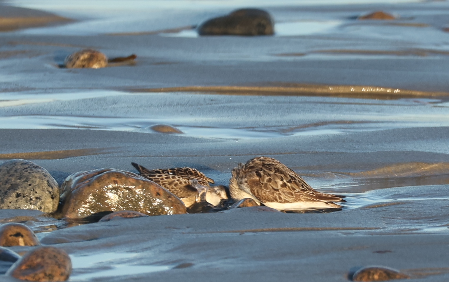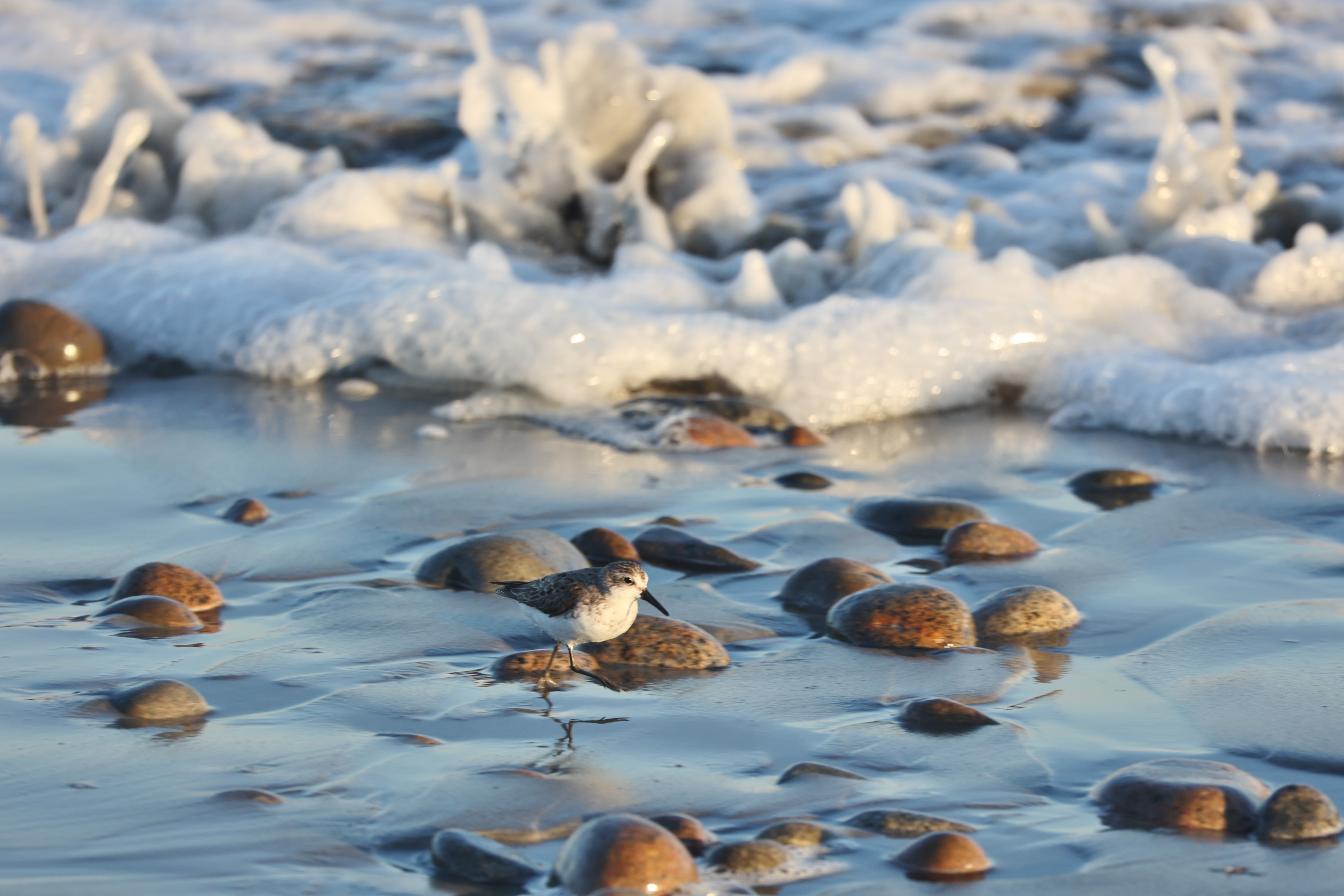 We had fun watching the shore bird antics along Pebble Beach late on recent afteroon. I believe you’ll see sanderlings and plovers here but if someone knows more than I, please share!