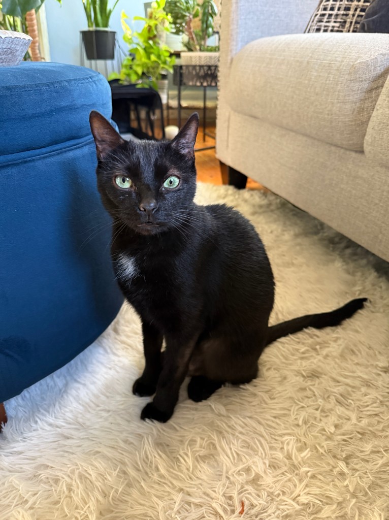 Meet Kicker! This adorable little lady is only two years old and as loving as can be. She loves head scratches and will melt into a puddle and purr when you scratch behind her ears. She also loves her toys and has plenty of energy to make playtime lots of fun! She has lived in a home previously, and during that time she’s shown us that she would much prefer to be an only pet. Kicker gets stressed out when she has other animals around, so she would absolutely love to be an only child–no children or other pets please! You may wonder why she has no hair around one of her eyes- Kicker needed to have surgery on her eyelids because her eyelashes were growing inward. She is considered a special needs adoption because she will need to be monitored in the future to make sure no additional surgeries are required. Kicker certainly doesn’t let her special needs drag her down, and we think her unique eyes only add to her charm and originality!