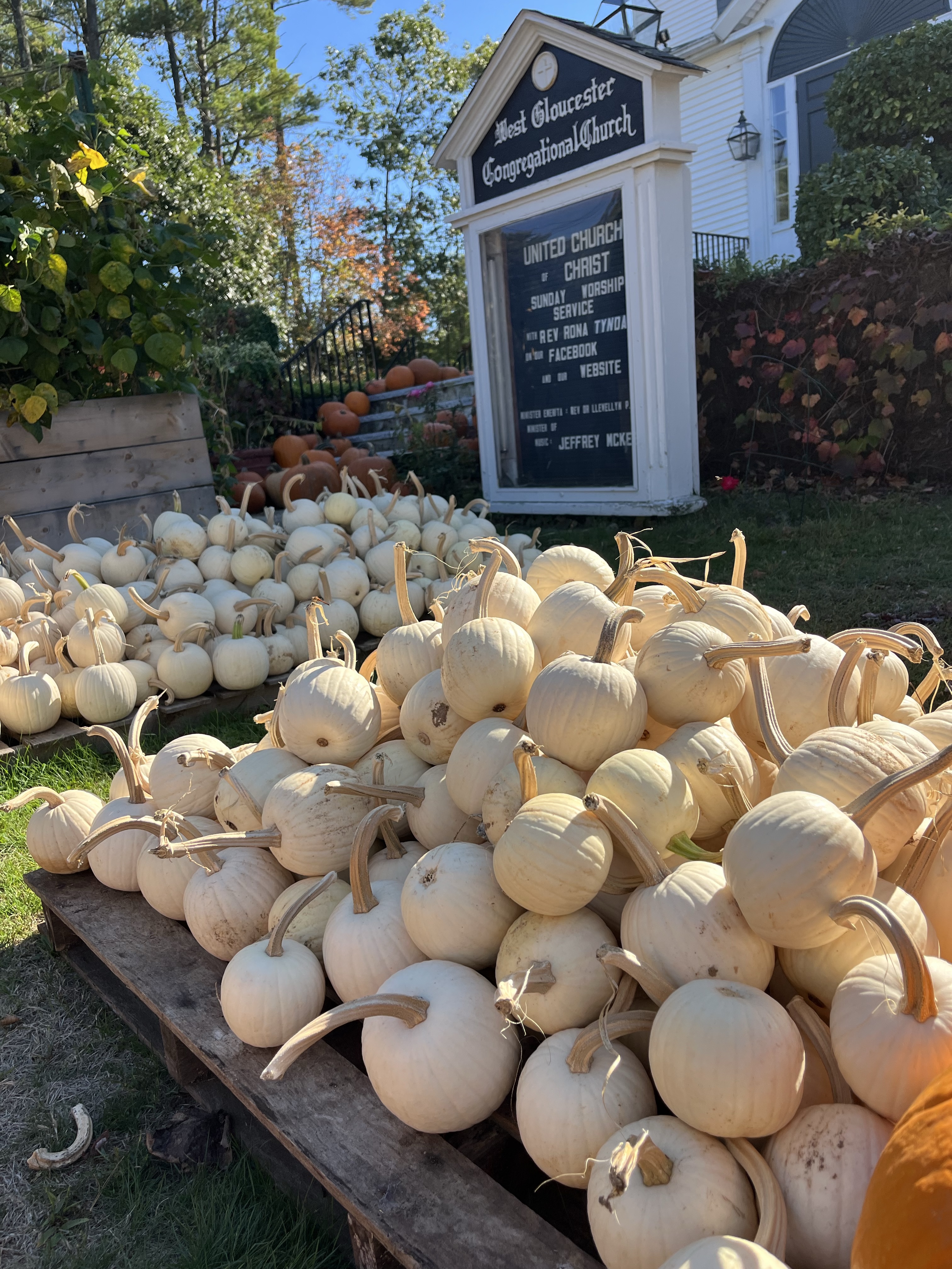 The West Gloucester Trinitarian Church on Essex Ave is once again offering their Pumpkin Patch for your delight and perusal. They are open family friendly after school hours and on the weekends. There are SO MANY available in sizes from small to huge; colors white to…well, … pumpkin. Great opportunity for photo ops and purchases. There’s something about a sea of pumpkins.