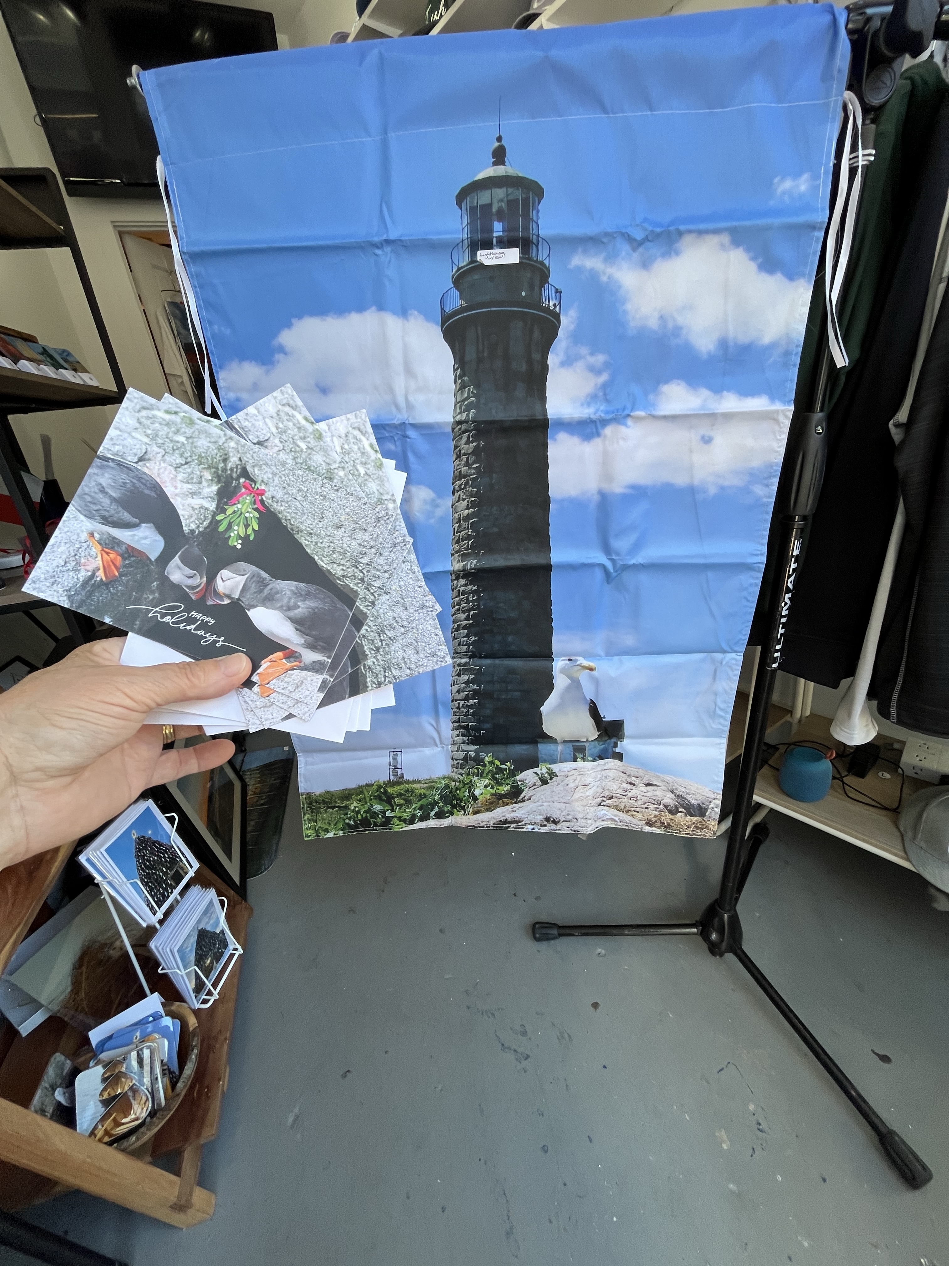 Pat D’s Photos will be in the shop tomorrow Friday Oct 10 from 11-3 and Monday (holiday) also from 11.3. On Sunday Oct 12 we will be at Magtoberfest in the Magnolia Library from 11-5. We have a special offer on our large 28″ x 42″ double sided ready to hang durable vinyl flags throughout the rest of October. Buy one ($35 plus shipping or free local delivery) and get 4 puffin holiday cards free until the end of October. Now that your summer flowers have faded, it’s time for some new color at your place! These make great gifts. See you at the shop Friday or Monday and at Magtoberfest in Magnolia Sunday! Reach out in comments if interested but you can’t stop by. While supplies last.