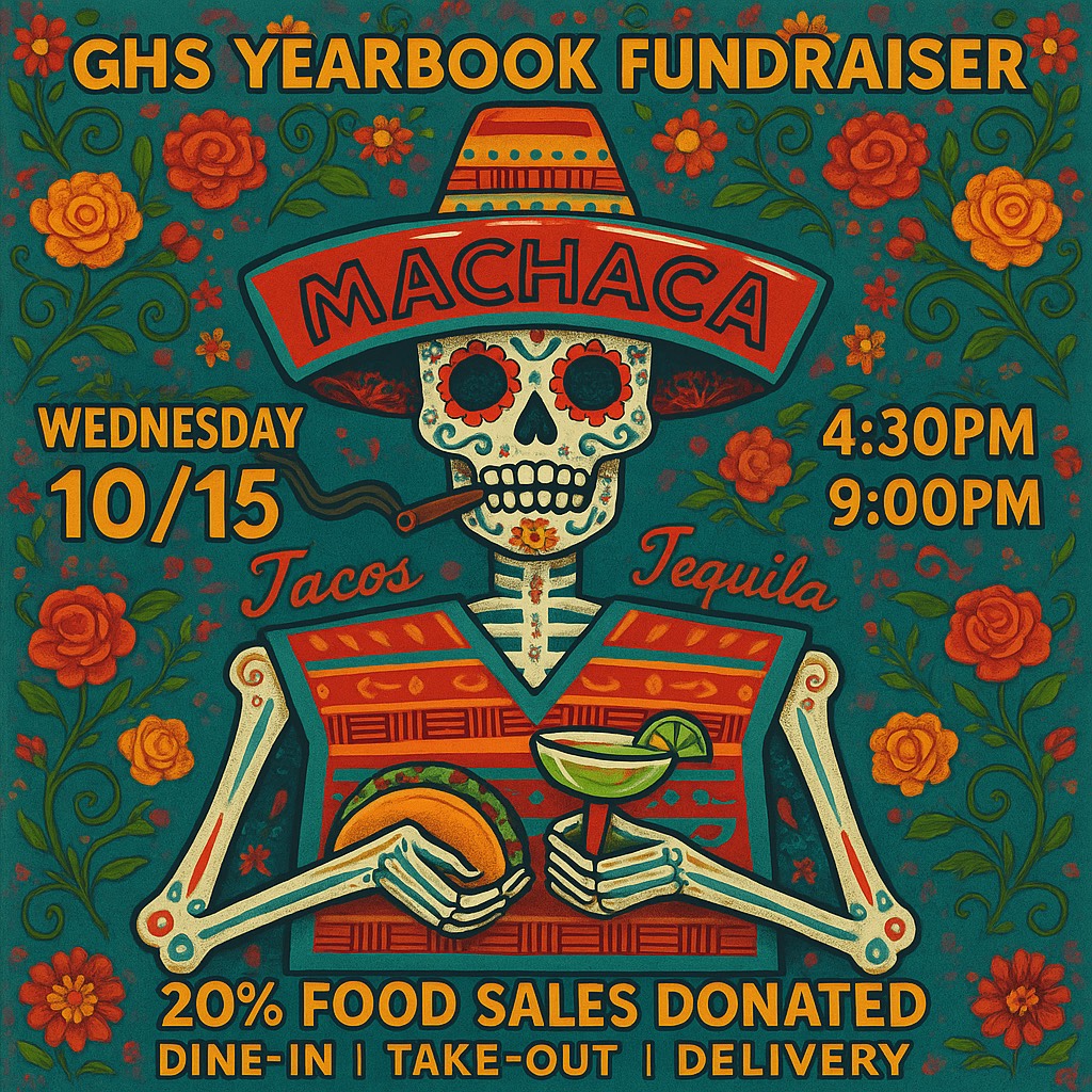 For this special event, 20% of all food sales will be donated directly to the GHS Yearbook Committee — helping fund printing, design, and production costs for this year’s yearbook so every student can hold onto their favorite high school memories!