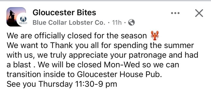 News You Can Use: The Gloucester House Pub on Rogers St is scheduled to reopen today at 11:30. We love the food, service and atmosphere. You can often find us there after store hours during these colder months. Thanks to Gloucester Bites for keeping us informed~