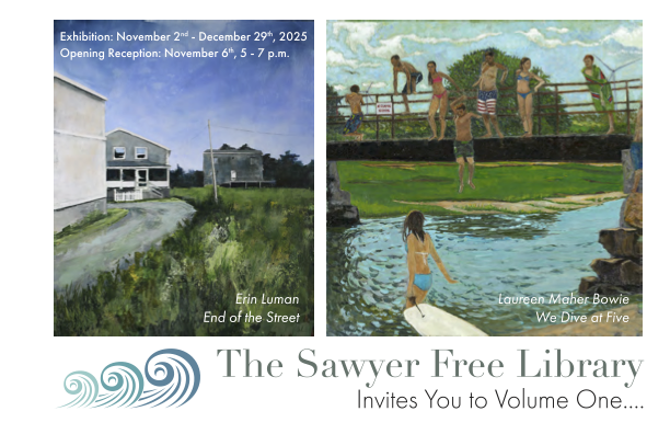 The Sawyer Free Library proudly presents Volume One, the inaugural exhibition in its new Monthly Artist Program—marking a vibrant beginning for the Library’s reimagined Matz Gallery and its renewed commitment to the arts. Featuring Gloucester artists Erin Luman and Laureen Maher Bowie, Volume One will be on view November 2 through December 29, 2025.