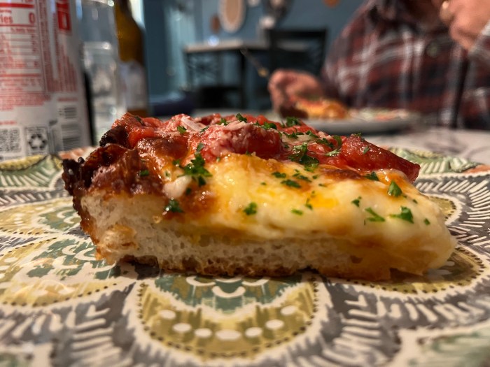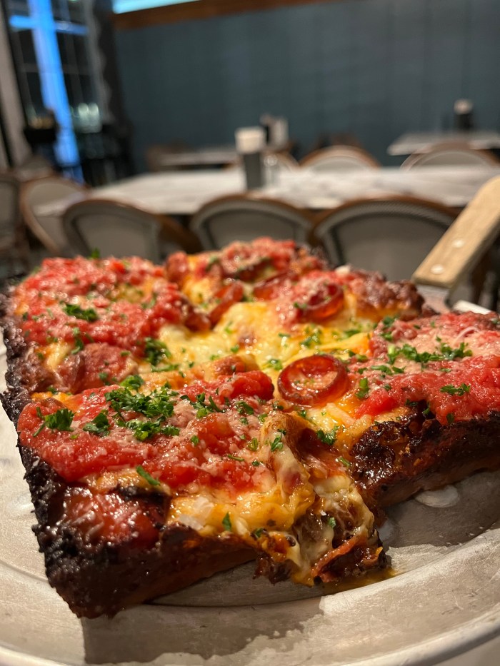 It was very dreary last Monday and we decided to return to Bravo By The Sea on Beach St in Manchester for their Monday special Detroit style pizza. It was exactly the right choice. That pizza is out of this world good! It takes a little longer to prepare but the wait is well worth it….as well as fairly reasonably priced for a dinner for two. It’s worth the short ride to make Monday feel just a little better.