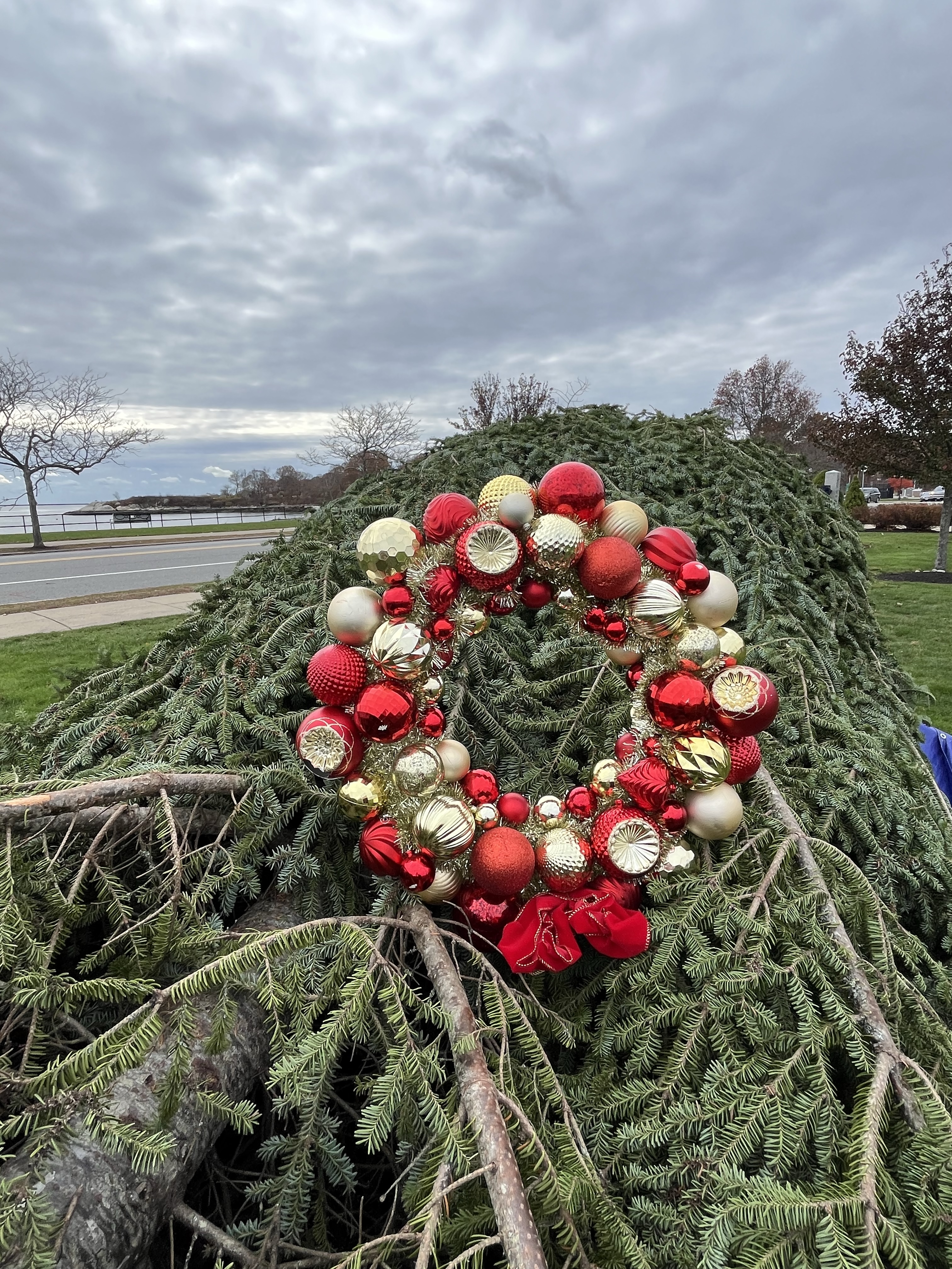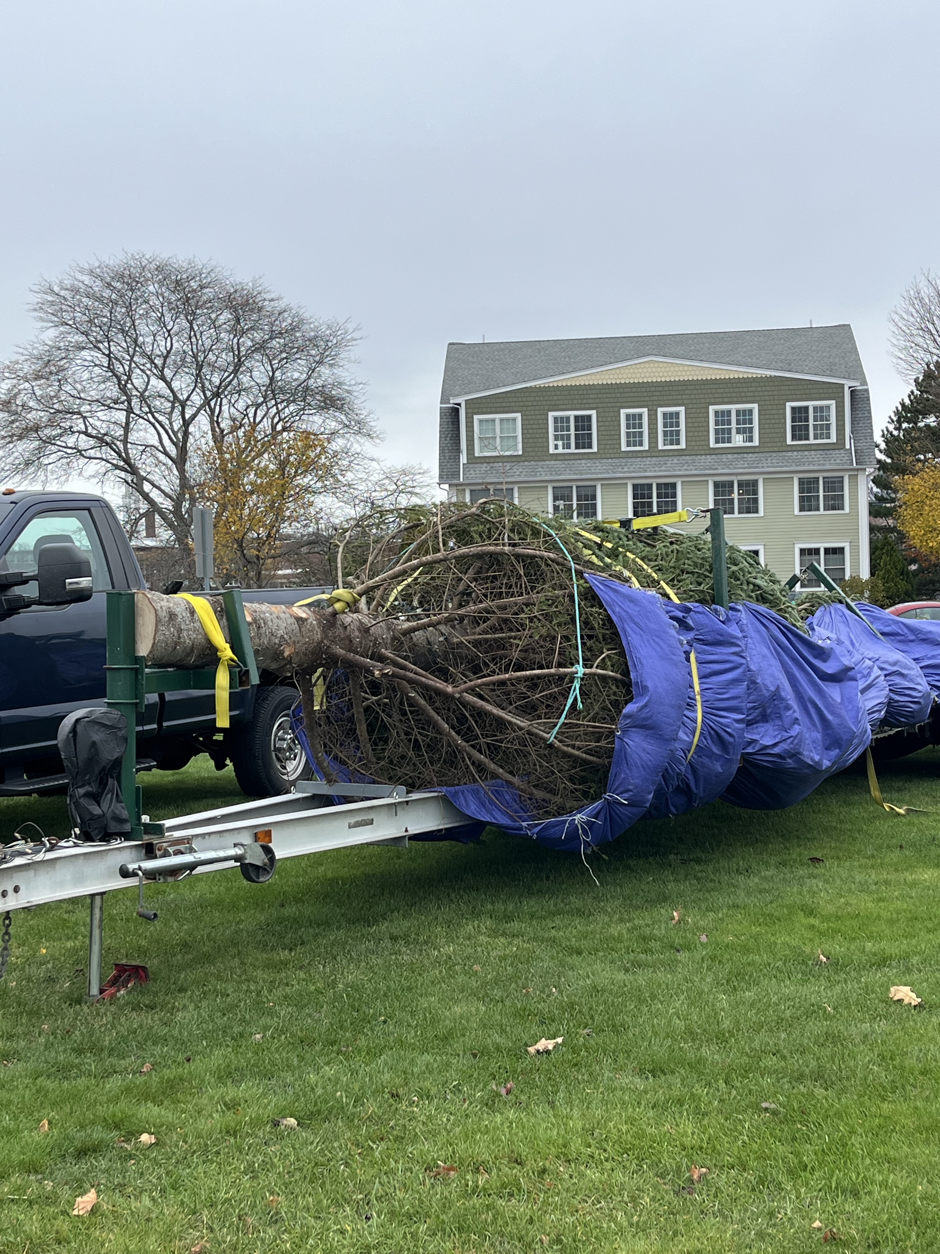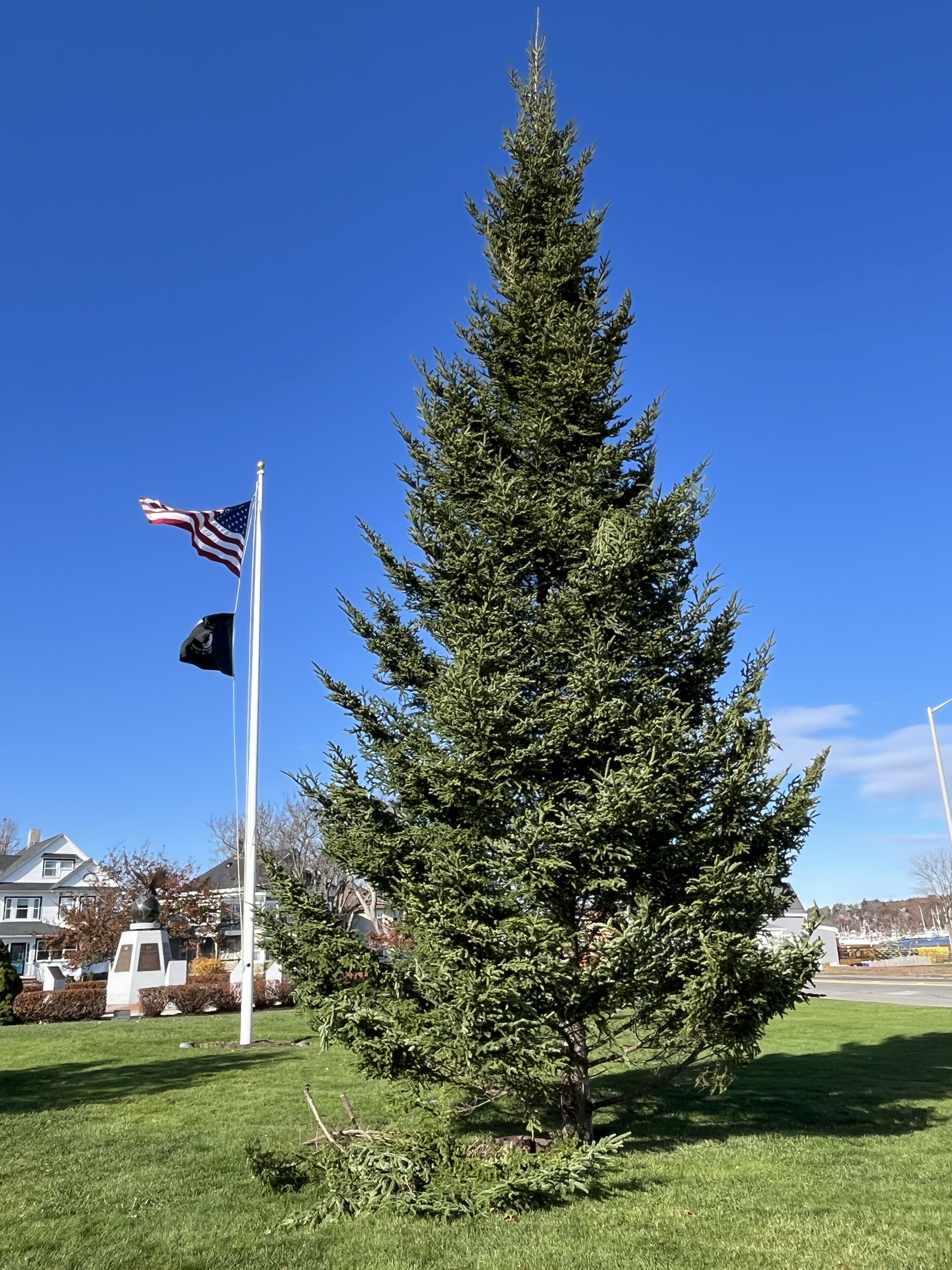 We were glad to see the annual tree from Shelburne arrive in Gloucester a few days ago thanks to the efforts of Ringo, Joe, Nick C and Nick D. The 32 foot fir has been set up and is preparing for the annual parade to be held Sun Nov 30 at 3 PM with the tree lighting as the event’s conclusion. This tree tradition is in its 31st year thank largely to Ringo Tarr. It’s a blessing for the entire community to get to view this bright shining example of friendship between Shelburne and Gloucester. Keith the Wreath just had to get out there to greet the tree to the neighborhood.