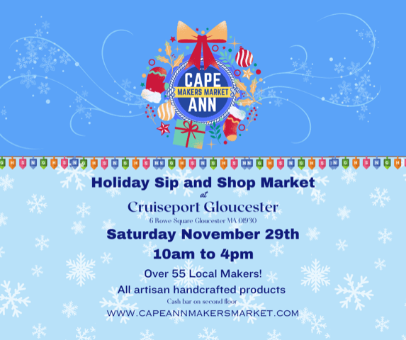 One week until the famous Cape Ann Makers Market at the Cruiseport!! You’re going to want to put this one on your calendar. Two floors filled with local vendors and their wares. Pat D’s Photos will be there along with our friends Donna Ardizzoni (Ardizzoni Photography); Deanna Fay (Hold Fast); and Anna Eves (Cape Ann Sea Salt) and many more! Perfect opportunity to knock off some of those items on our gift list and say hello to friends and neighbors.