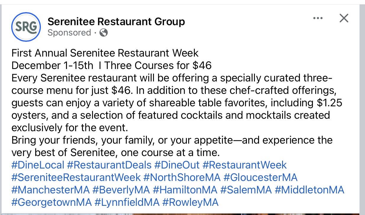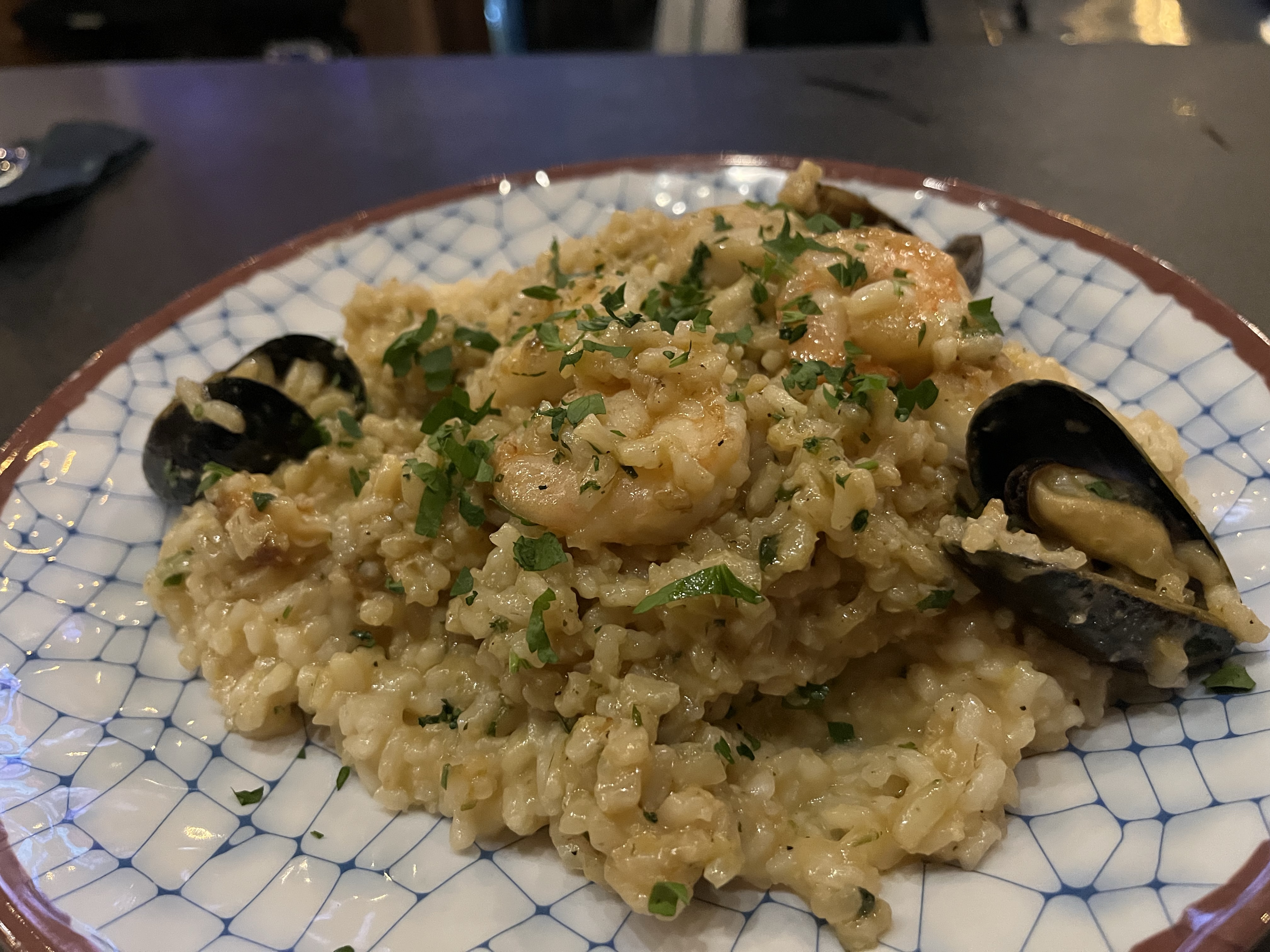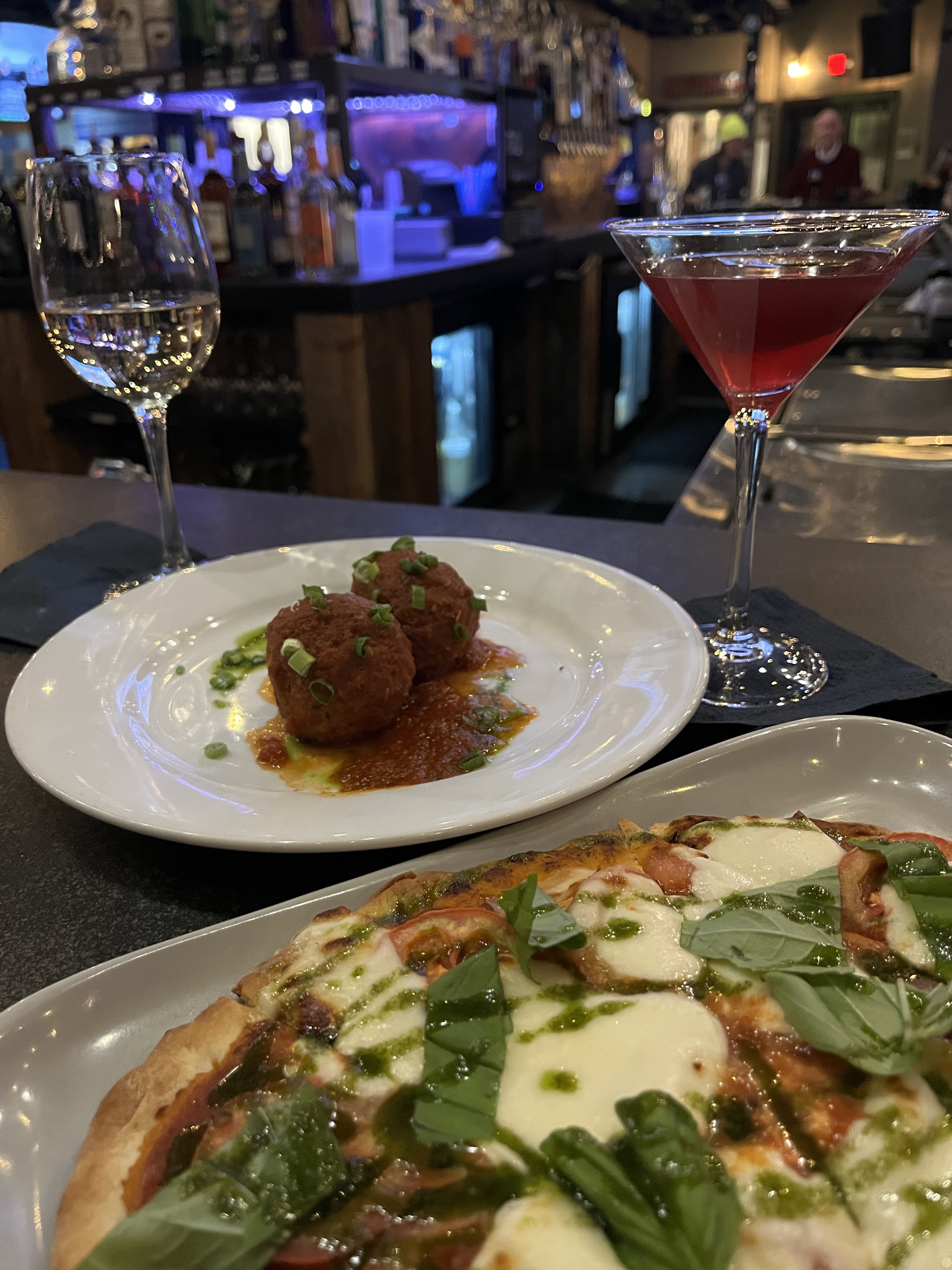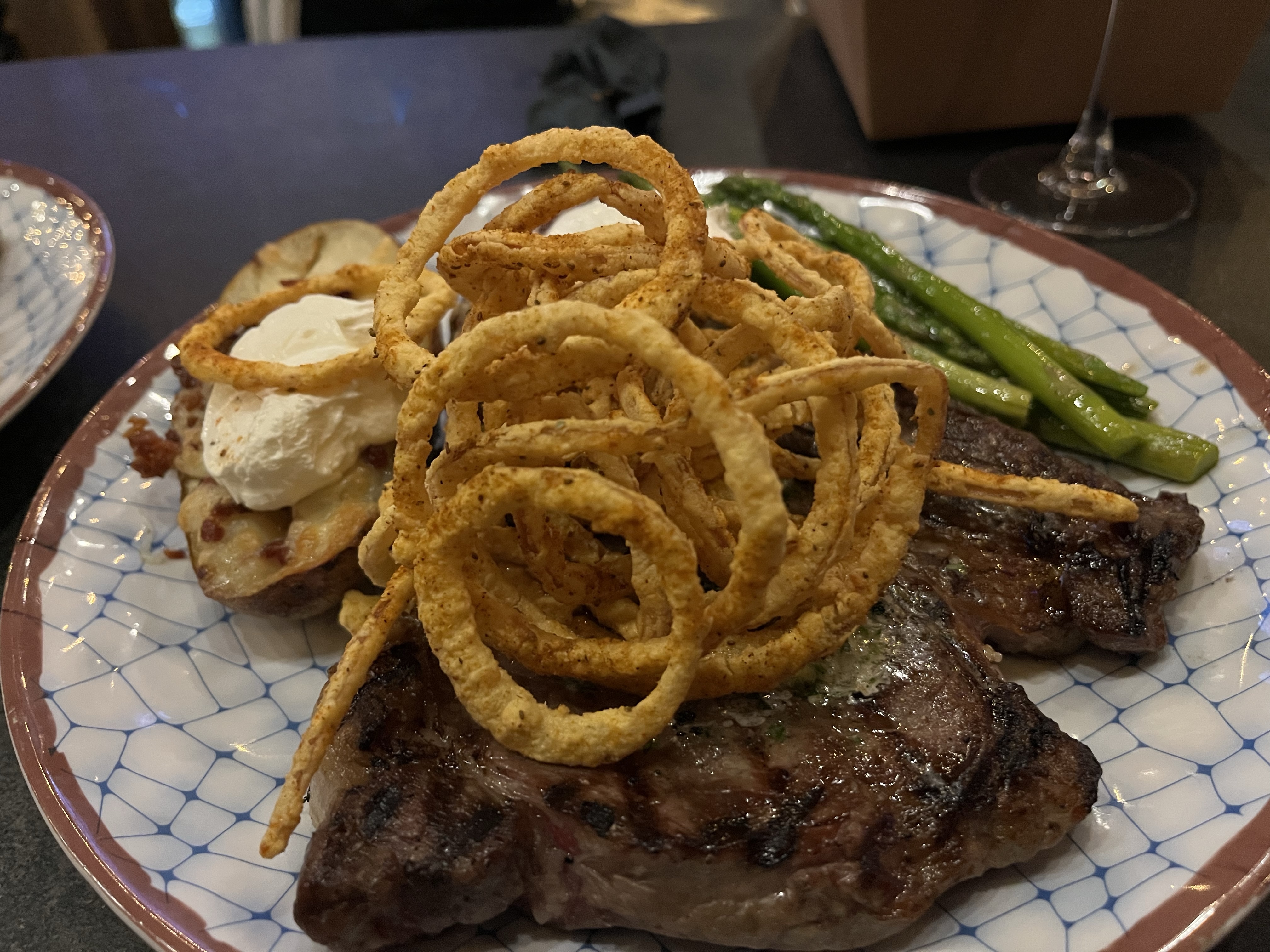 I saw that the Serenitee restaurants were offering a first-ever Restaurant Week menu and we just had to give it a try at our favorite Serenitee restaurant: Minglewood on Rogers St. As always, we were warmly greeted and promptly offered menus and drinks (thanks Ryan). We chose from the Restaurant Week menu selections our 3 courses for $46 each. Jim had arancini and I tried the flatbread appetizer. The arancini disappeared and the flatbread was a great start. I wanted the ribeye with loaded potato and onion strings, which were an extra charge but totally worth it. In particular, the onion strings were outstanding. Jim had seafood risotto which he enjoyed so much there was none leftover to bring home. AND dessert (yes, desert..) we each had lemon cake. I was very happy to support this new effort from Serenitee and hope to try another site before Dec 15. You still have time to try it yourself! It’s a holiday gift you give yourself.