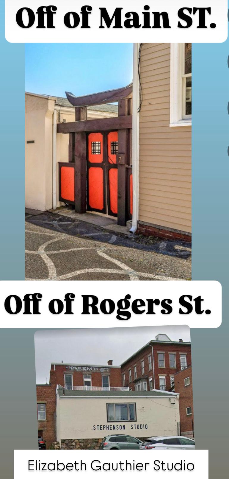 WHERE: 5 Parsons St. in Gloucester off of Rogers St. or off of Main St. (the Studio of Elizabeth Gauthier, formerly Stephenson Studio). Please enter the archway In the alleyway on Parsons St.
