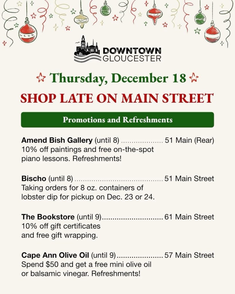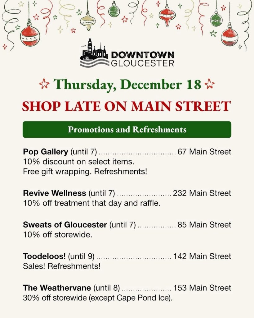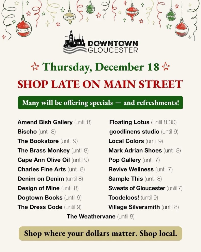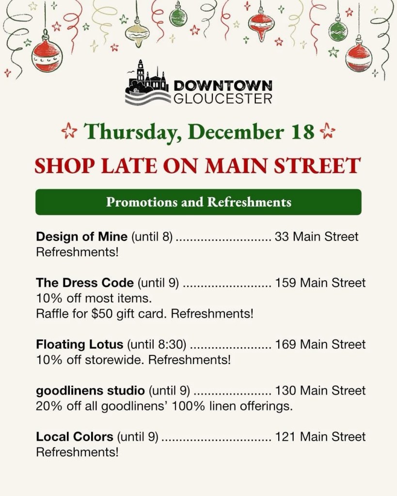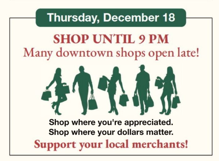 Some of your favorite downtown stores plan to stay open late tonight to help you with your holiday preparations. Keep an eye out on their social media or maybe give a call to check if you want to know specific store info. We will be open 11-5 today and tomorrow at 44 Main St.