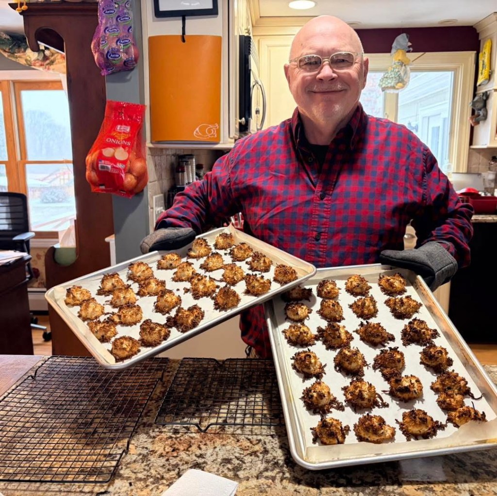 These can be trying times and we are here to provide a place to take a breath. I am here baking macaroons to be handed out to anyone who just wants a little something sweet as I first did when we opened along with our fantastic carrot cake. Come on by to say hi. If you have time please feel free to just relax, unwind and hang out with me chatting or enjoy the hockey/football/basketball/polo game or play a round of cribbage/scrabble/pass the pig or whatever makes you happy.