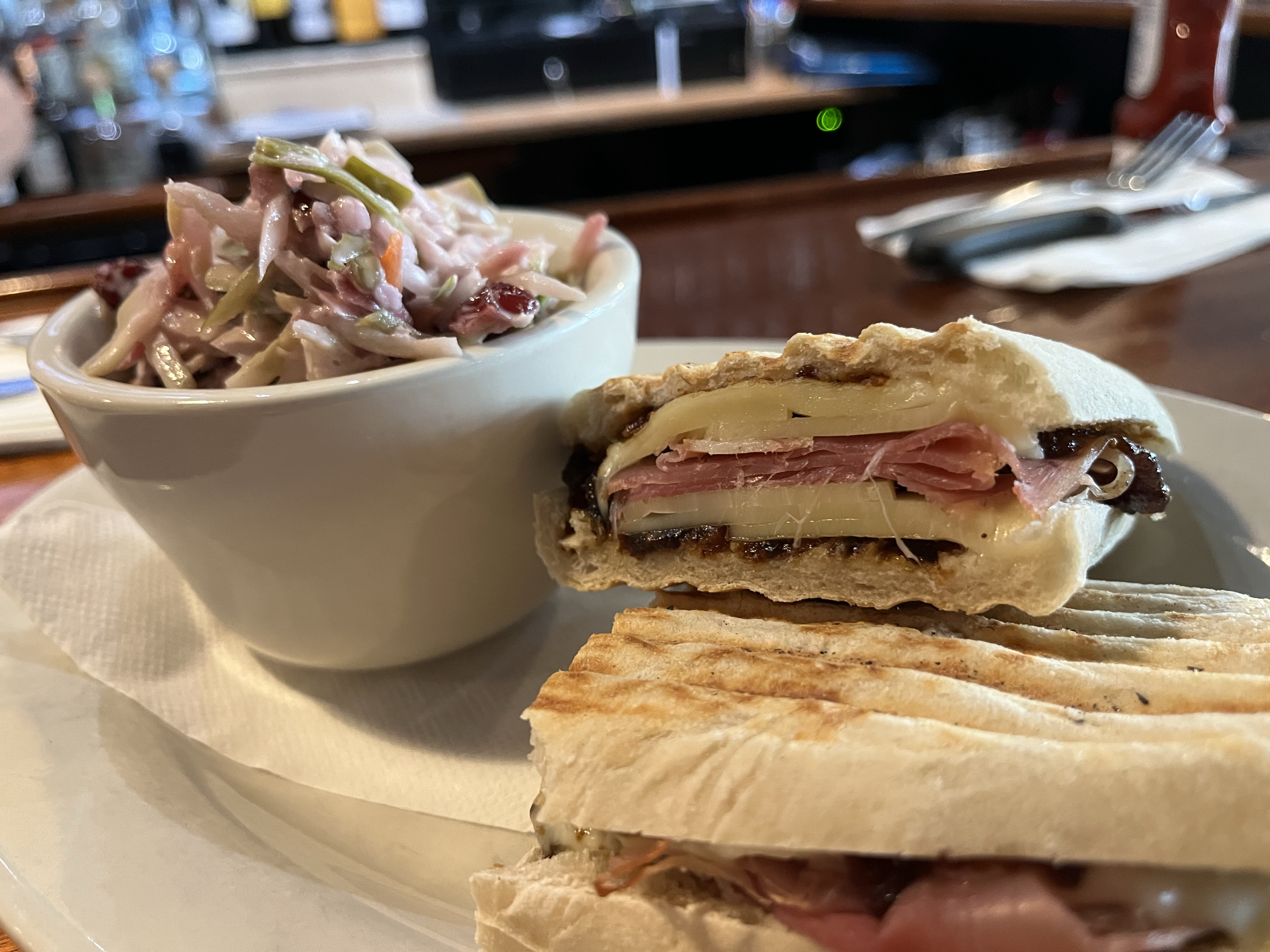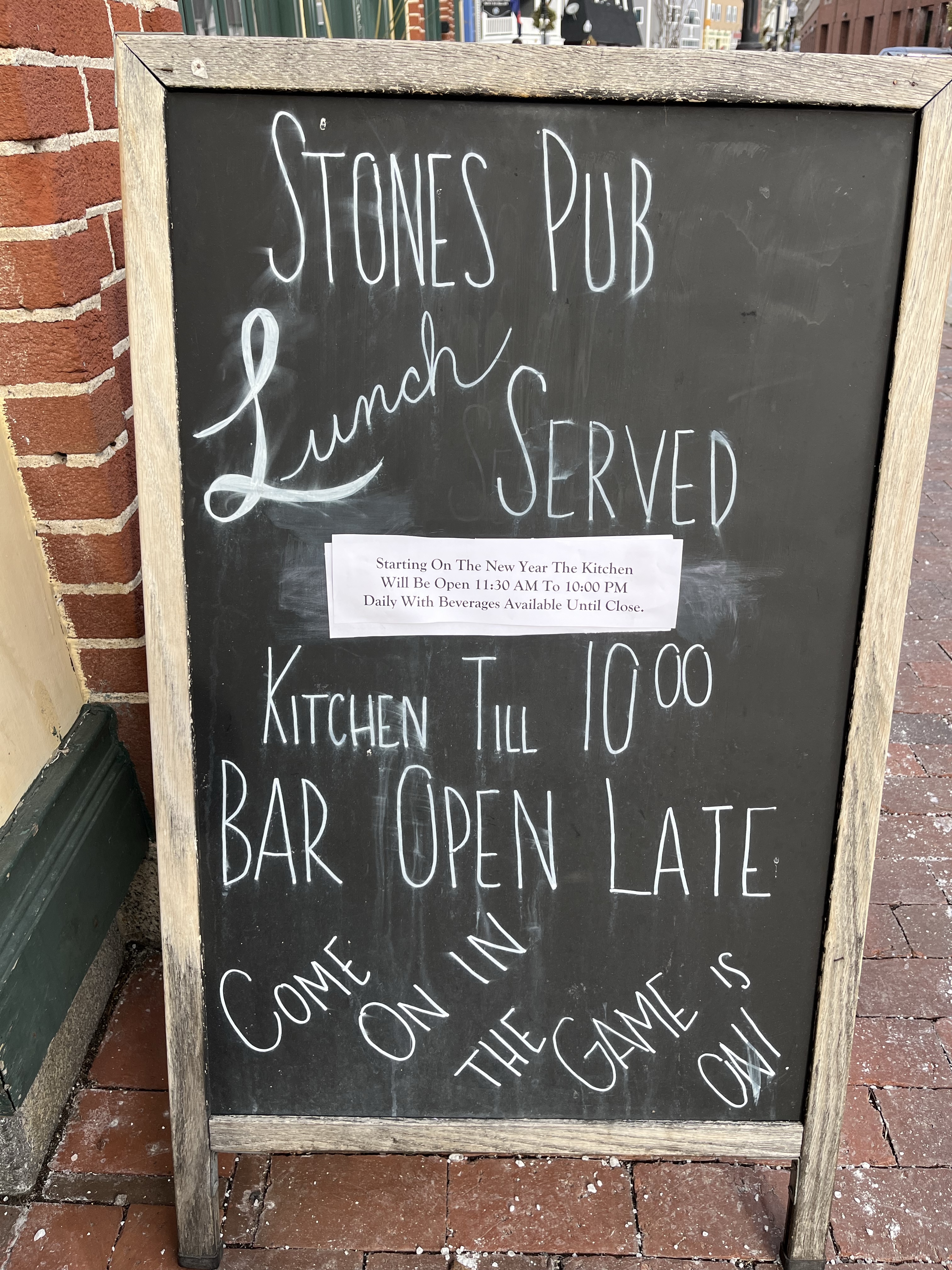 As you may have heard, Stones Pub on Main Street is open every day now for lunch starting at 11:30. We joined Joey there to check it out. We enjoyed some of the ever-present popcorn as we looked over the menu. I had Carolina Wings which were on the specials menu and Jim had the fig panini which were excellent. We topped off the meal with a piece of wonderful carrot cake. A great lunch in a comfortable warm atmosphere. We will return!
