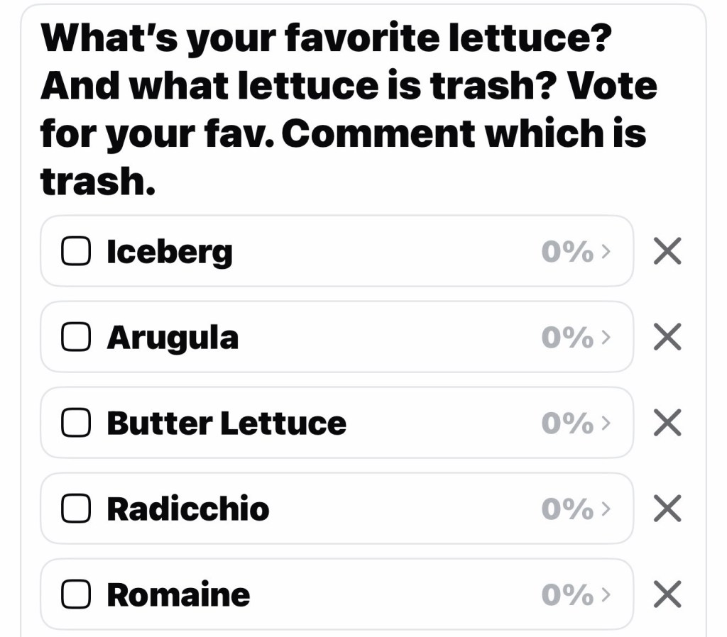 What’s your favorite lettuce? And what lettuce is trash? Vote for your fav. Comment which is trash.