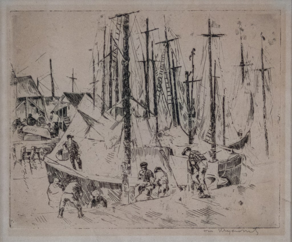 While on Cape Ann, many masters honed their exemplary skills. Painter-etchers Stephen Maxfield Parrish and William Meyerowitz mastered etching to reach wide audiences, being personally involved in the entire process of creating the image, grinding the plate, and pulling the print. Additionally, lithographer Stow Wengenroth, referred by Winslow Homer as “the greatest black and white artist in America,” developed an uncanny mastery for capturing the mood, light, and texture of Cape Ann’s compelling landscape.