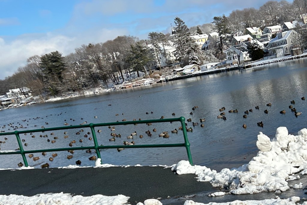 I get that ducks “stay warm” in the winter thanks to all sorts of design features such as waterproof outer feathers, a down layer, and even some cool heat exchange deal in their legs but, you’ll never convince me not to be sad when I see them in the ice cold water. And, yes, I realize they’d get out of the water if they were truly miserable………