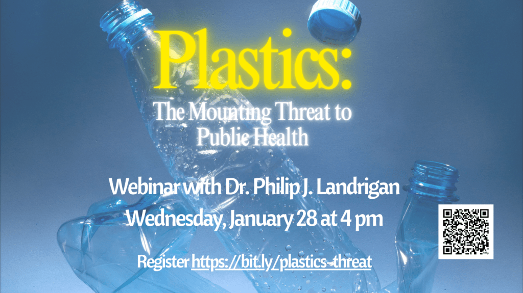 Dr. Landrigan is a pediatrician and epidemiologist, and he directs the program for Global Public Health and the Common Good at Boston College and the Global Observatory on Planetary Health. Dr. Landrigan has collaborated with other scientists to study the health impacts of plastics throughout their life cycles. He will share the study’s results and give his recommendations for taking bold steps now to reduce plastics and mitigate their health impacts. Dr. Landrigan will also respond to questions from the webinar audience.