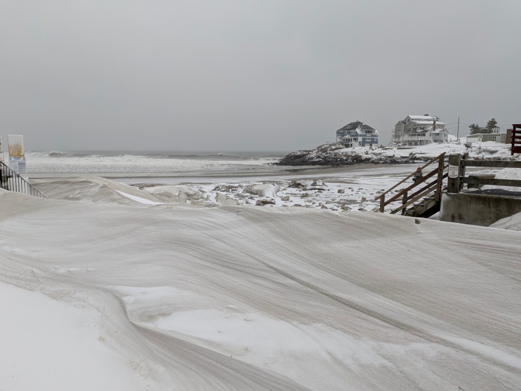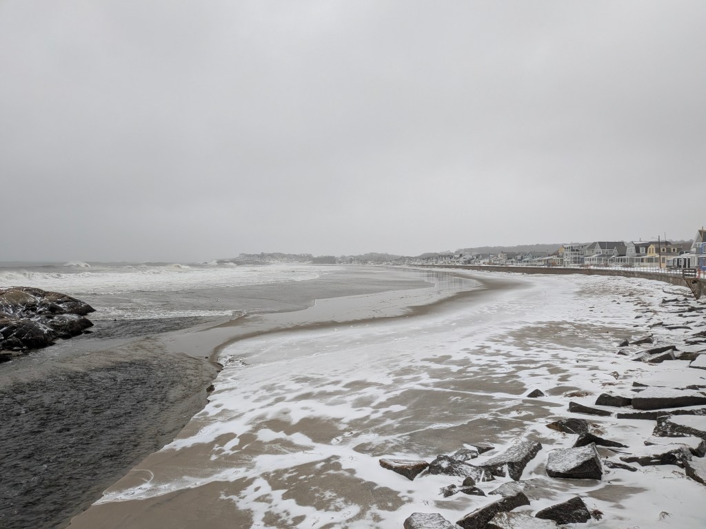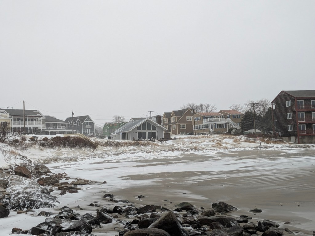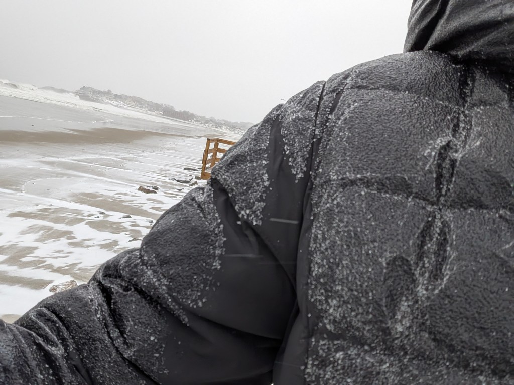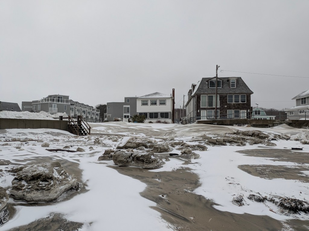 photos & video January 26, 2026: Ventured out for a walk about 4 hours after high tide and was surprised by the rollers. Road plowed. Sand whipped wind near Long Beach.