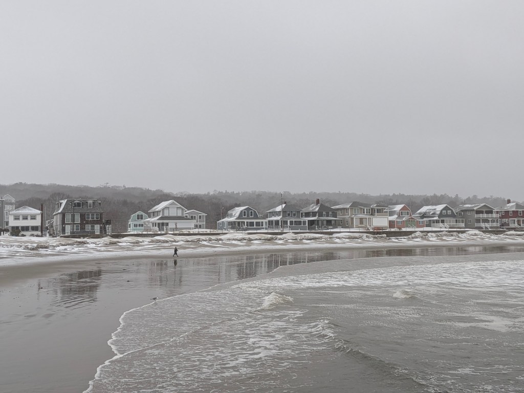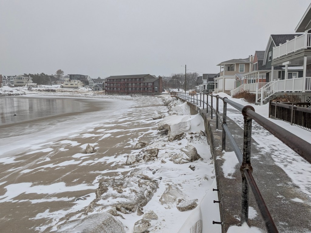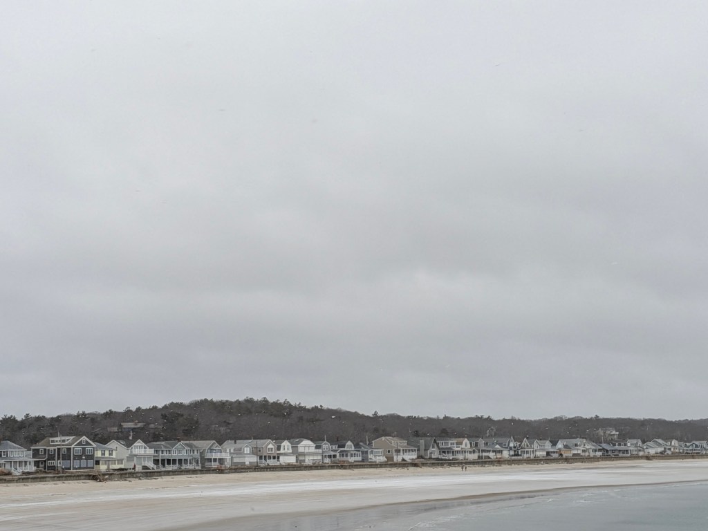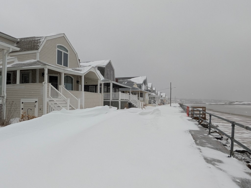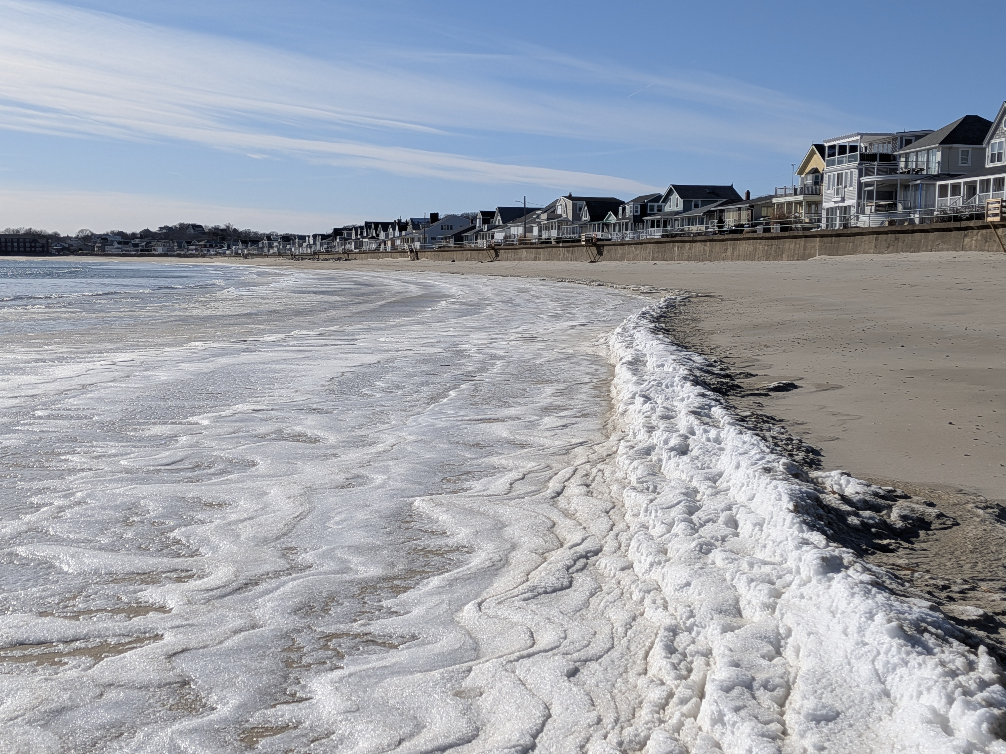 photos & video January 26, 2026: Ventured out for a walk about 4 hours after high tide and was surprised by the rollers. Road plowed. Sand whipped wind near Long Beach.