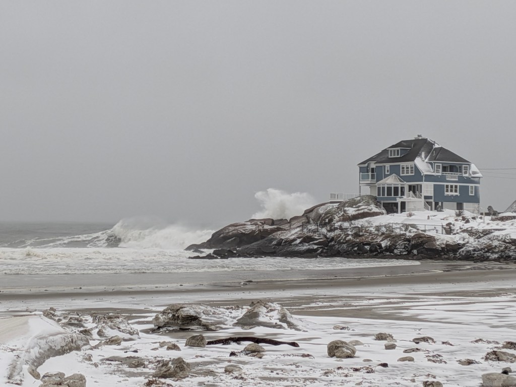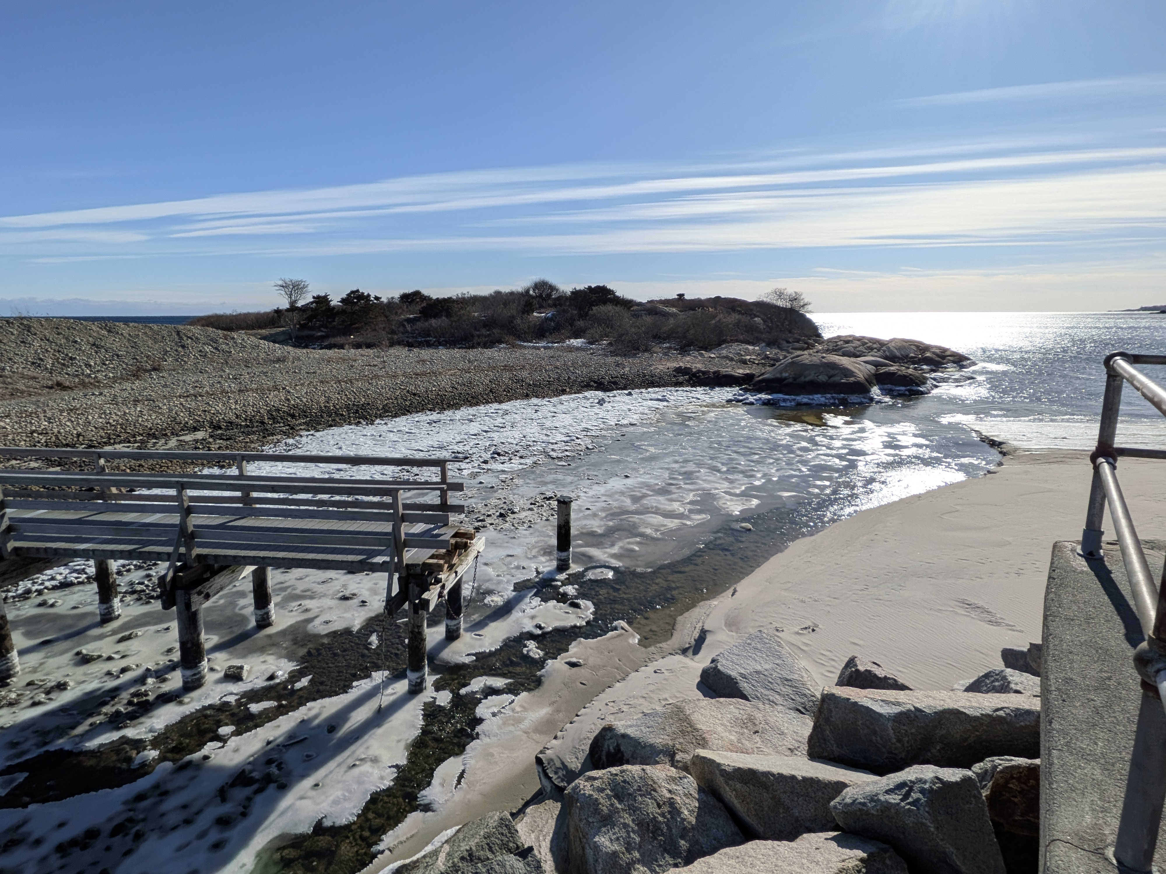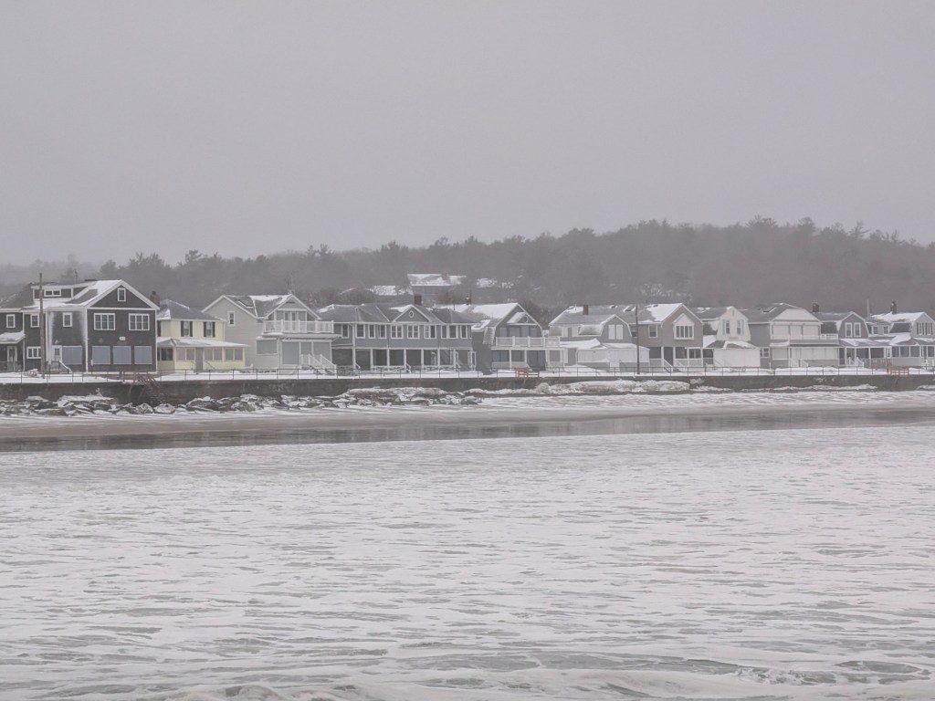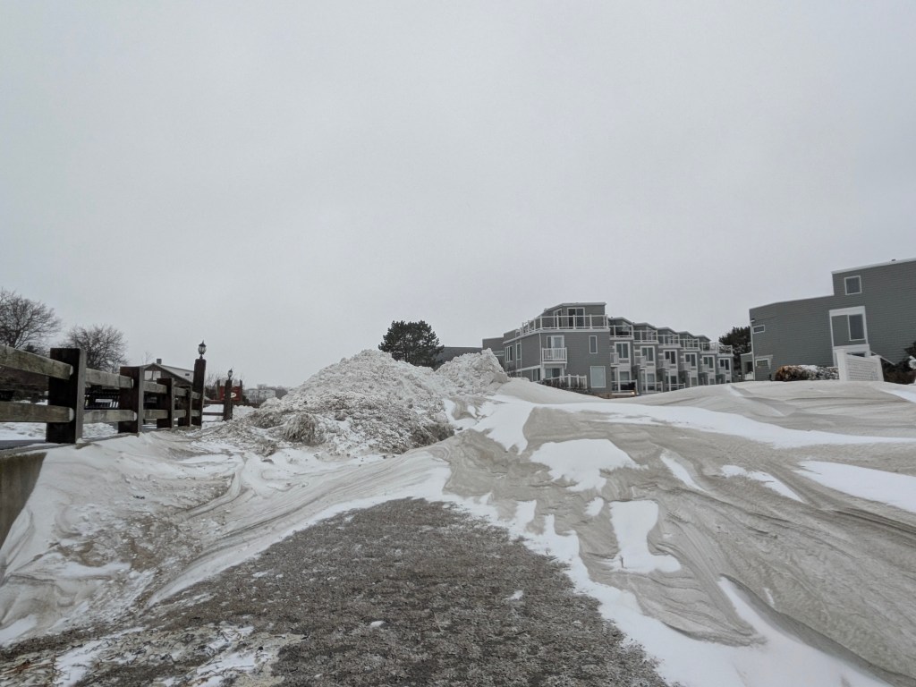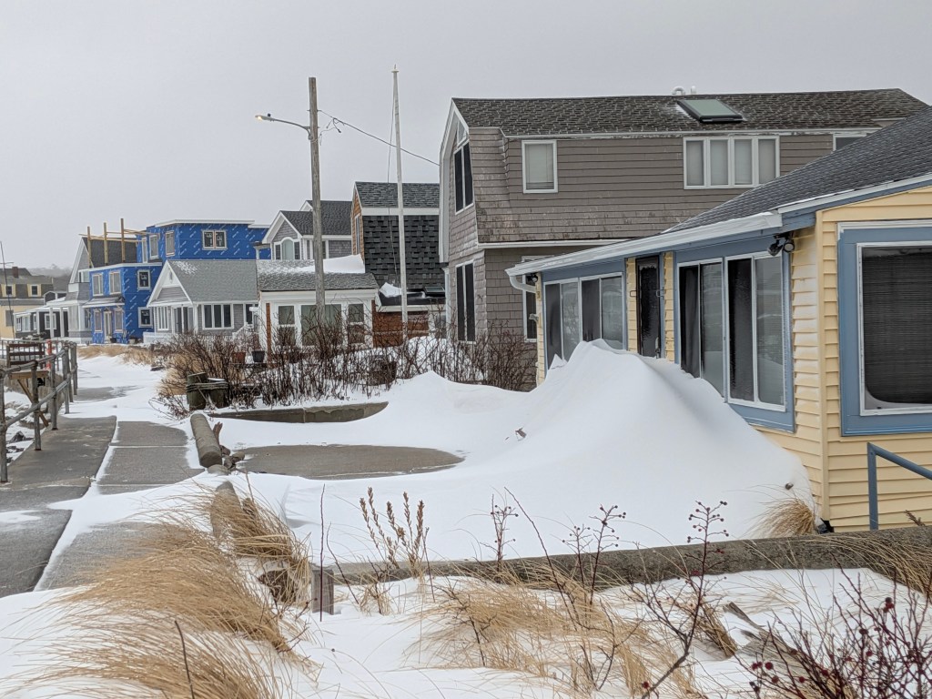 photos & video January 26, 2026: Ventured out for a walk about 4 hours after high tide and was surprised by the rollers. Road plowed. Sand whipped wind near Long Beach.