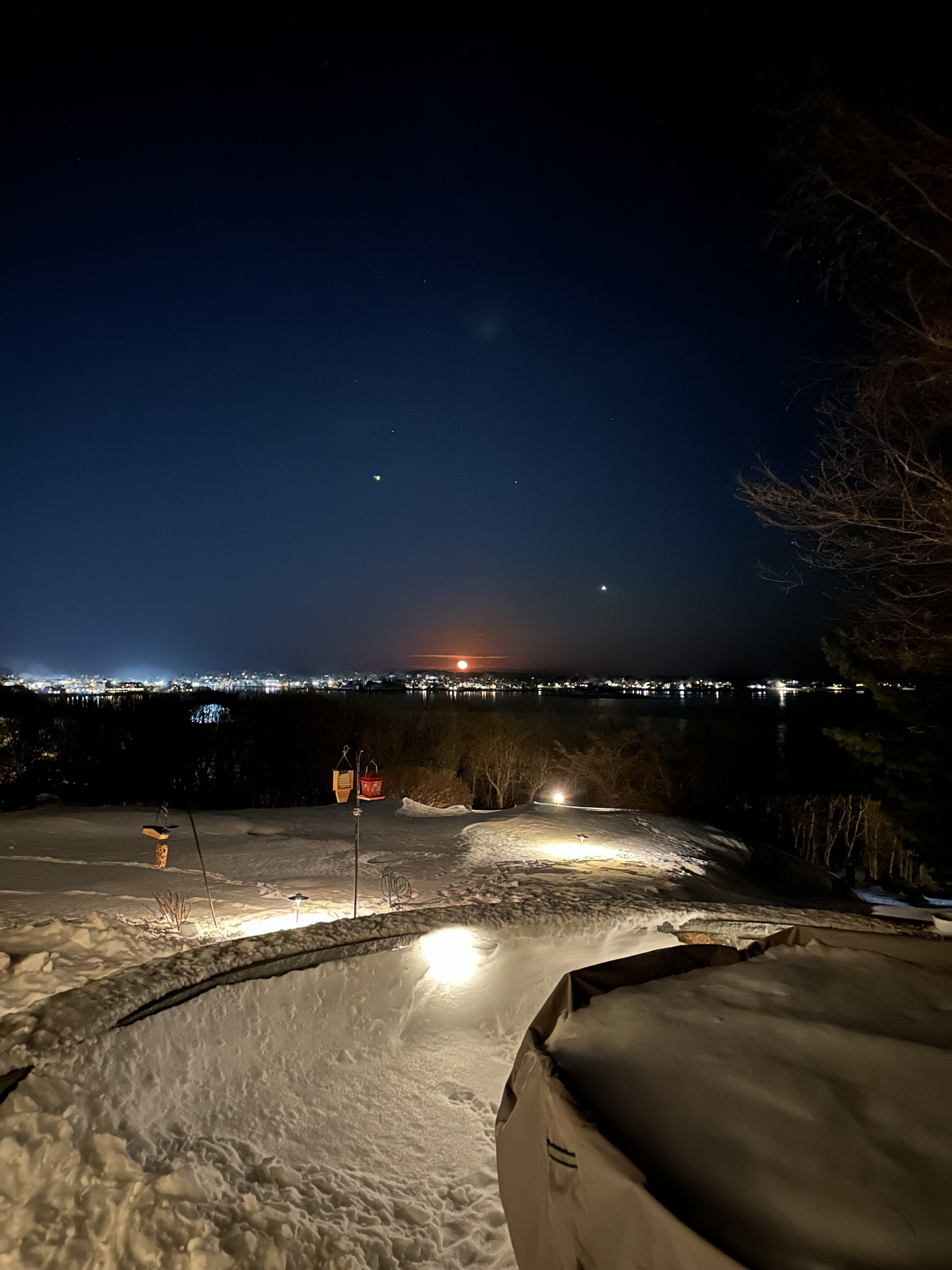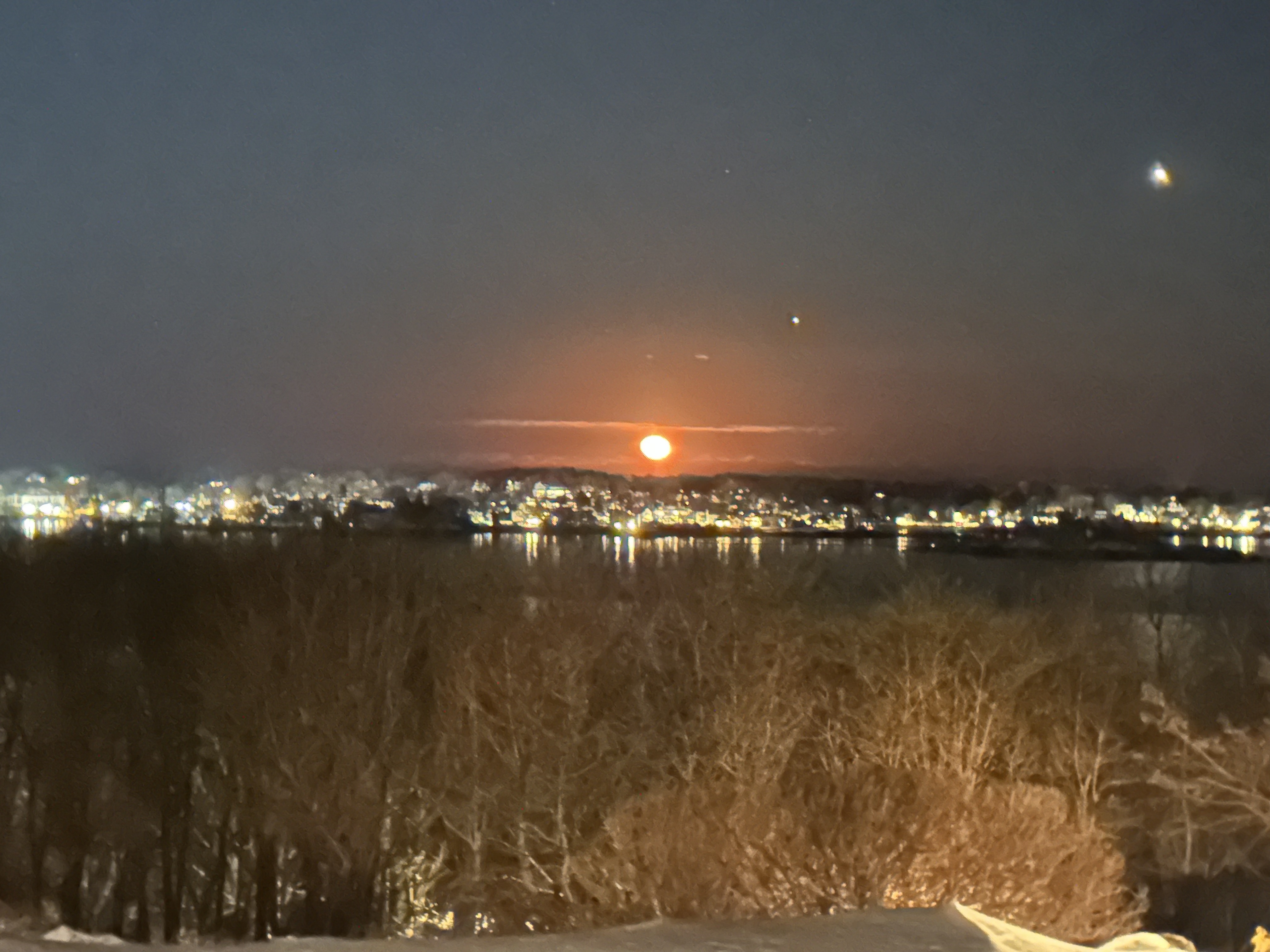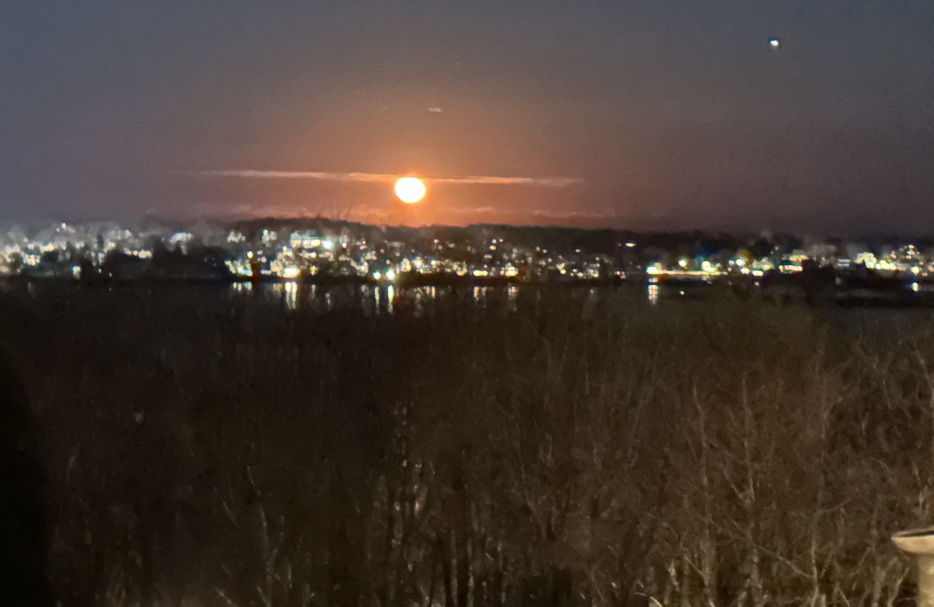These photos are submitted by Susan LaRosa as she viewed the full moon rise over the harbor earlier this week. I am struck by how peaceful it is. Thank you Susan!