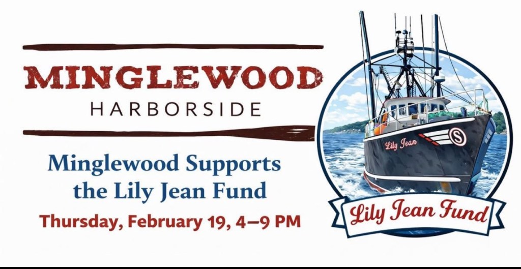 Minglewood Harborside- February 19 from 4:00 PM to 9:00 PM as we come together in support of the F/V Lily Jean families.During this time, a portion of all food sales will be donated directly to the Lily Jean Fund to assist the families and our fishing community.