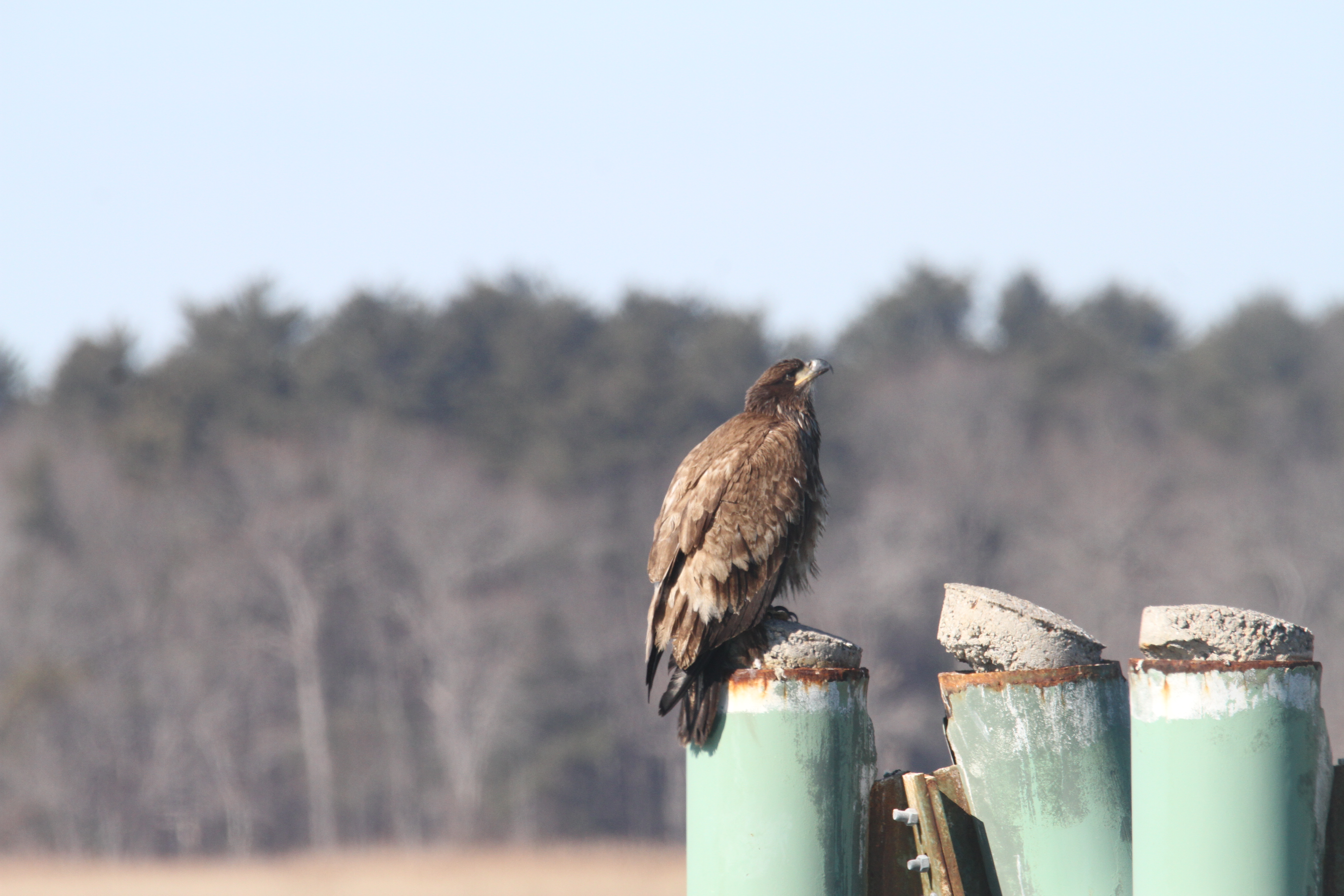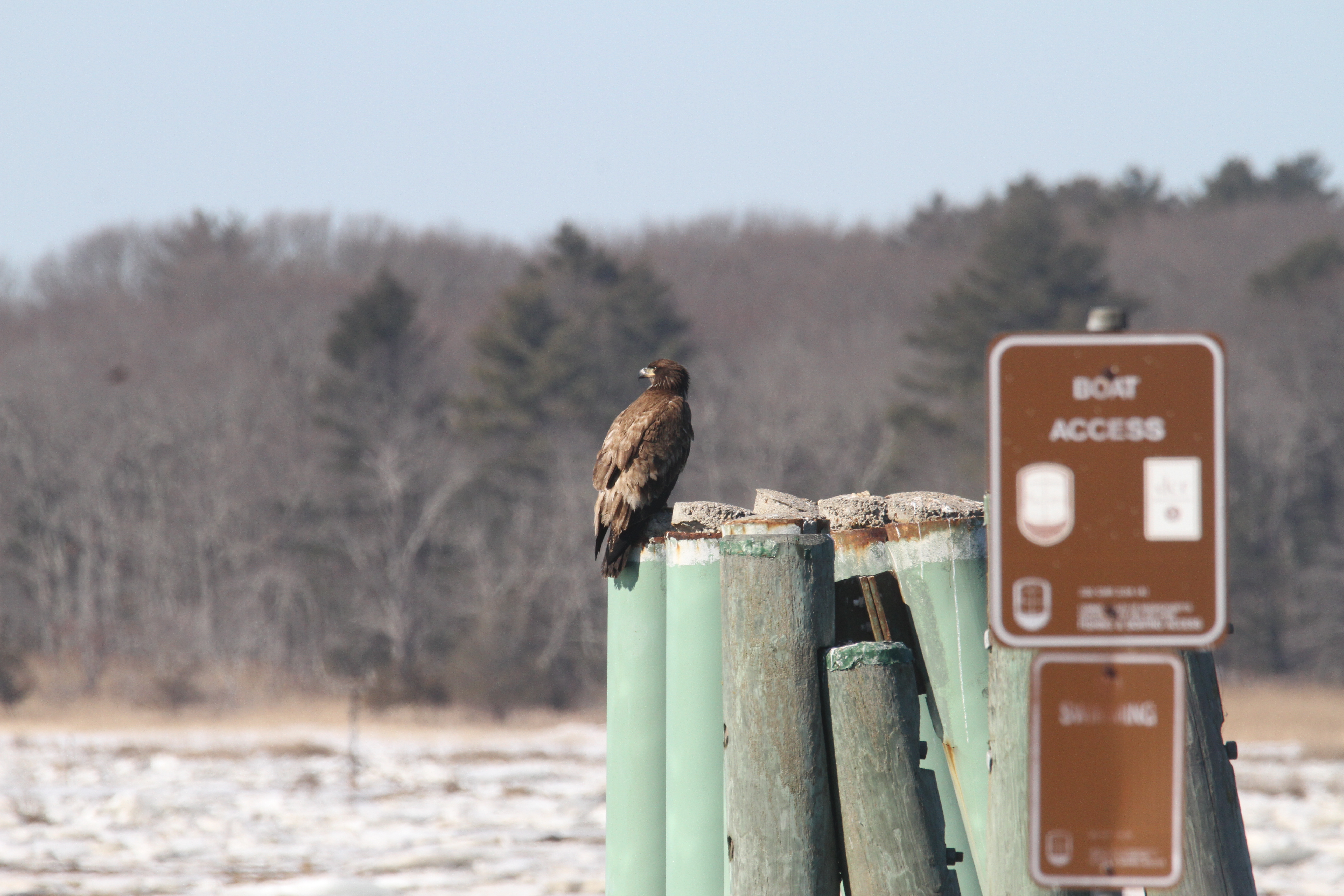 We were delighted to find no fewer than 3 eagles at Salisbury Beach State Reservation recently. If you keep your eyes peeled at this time of the year, you can often spot bald eagles. Each of these appeared to be younger eagles, making it a little harder to spot without the signature white head and tail. One was perched at the boat ramp, keeping a careful eye on the squawking gulls. This one registered displeasure with the fly-bys vocally which was pretty impressive and distinct.