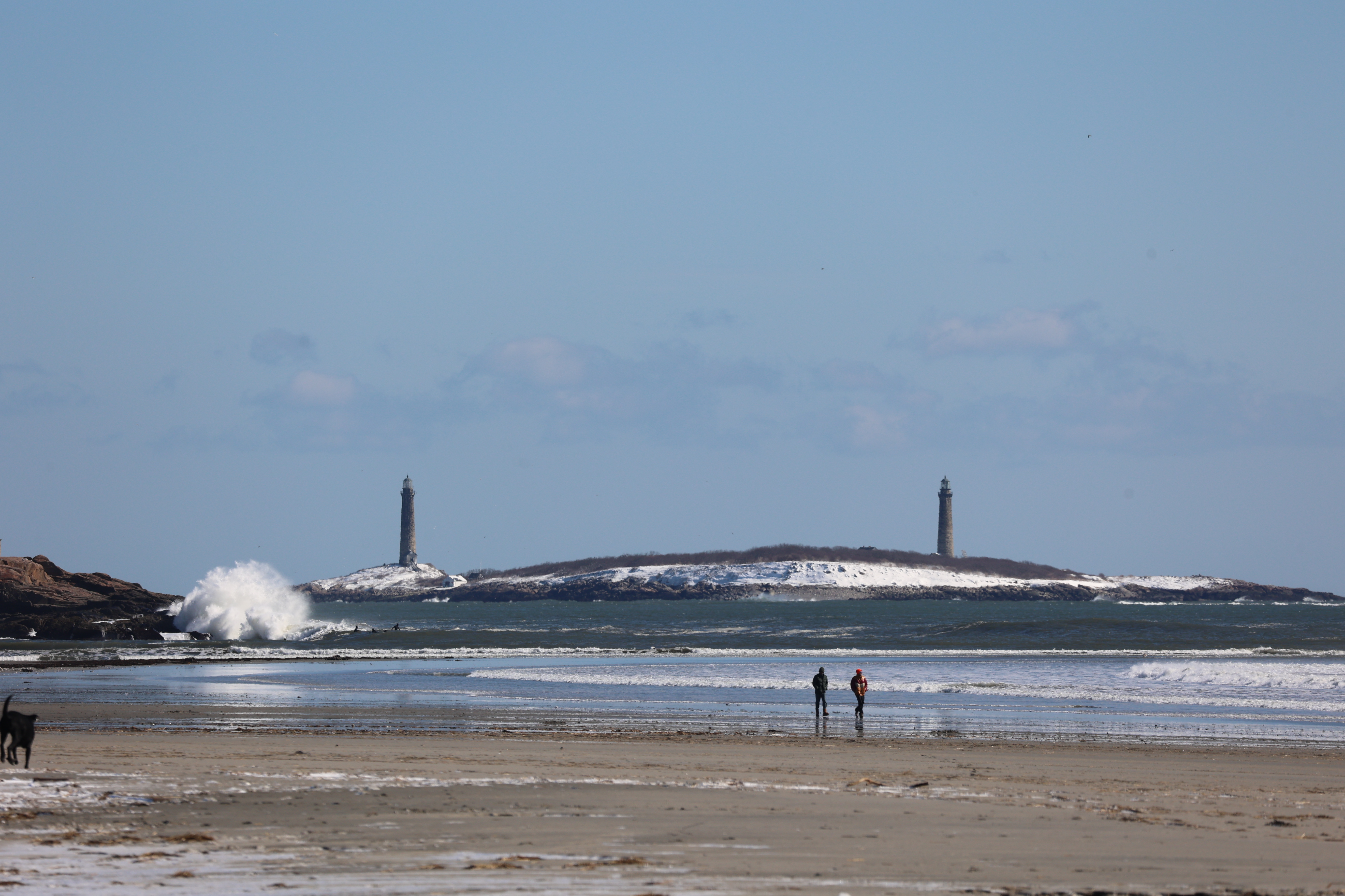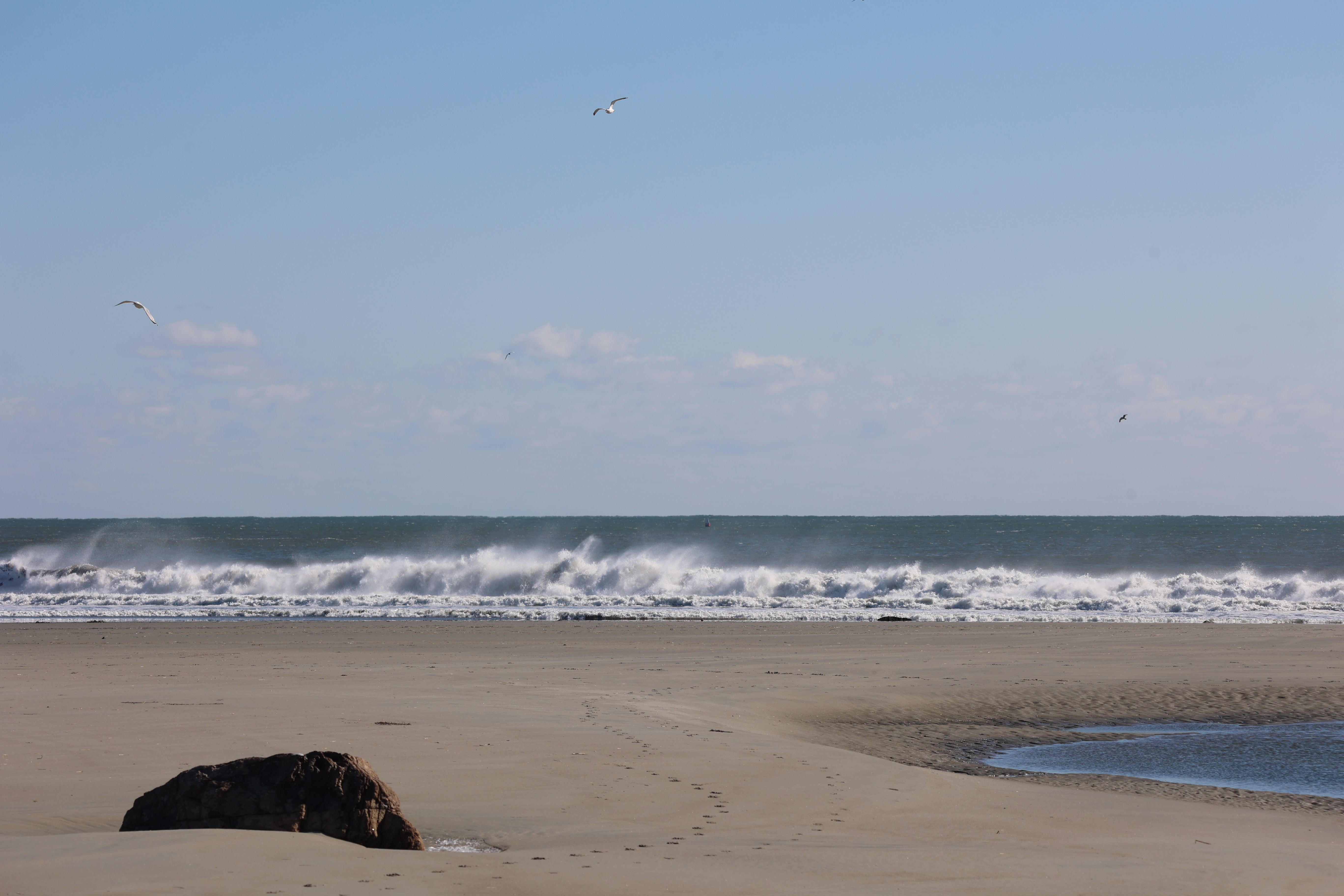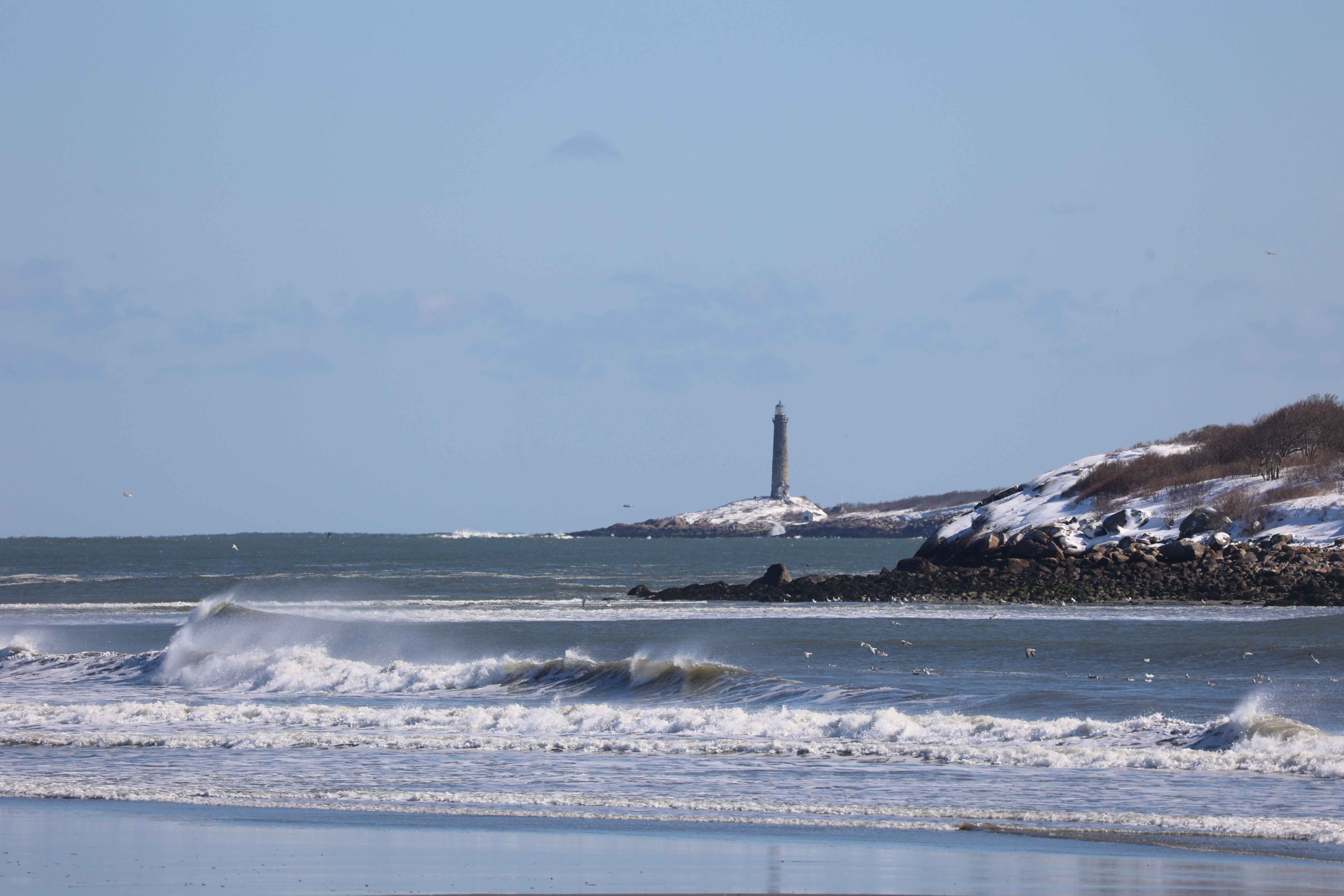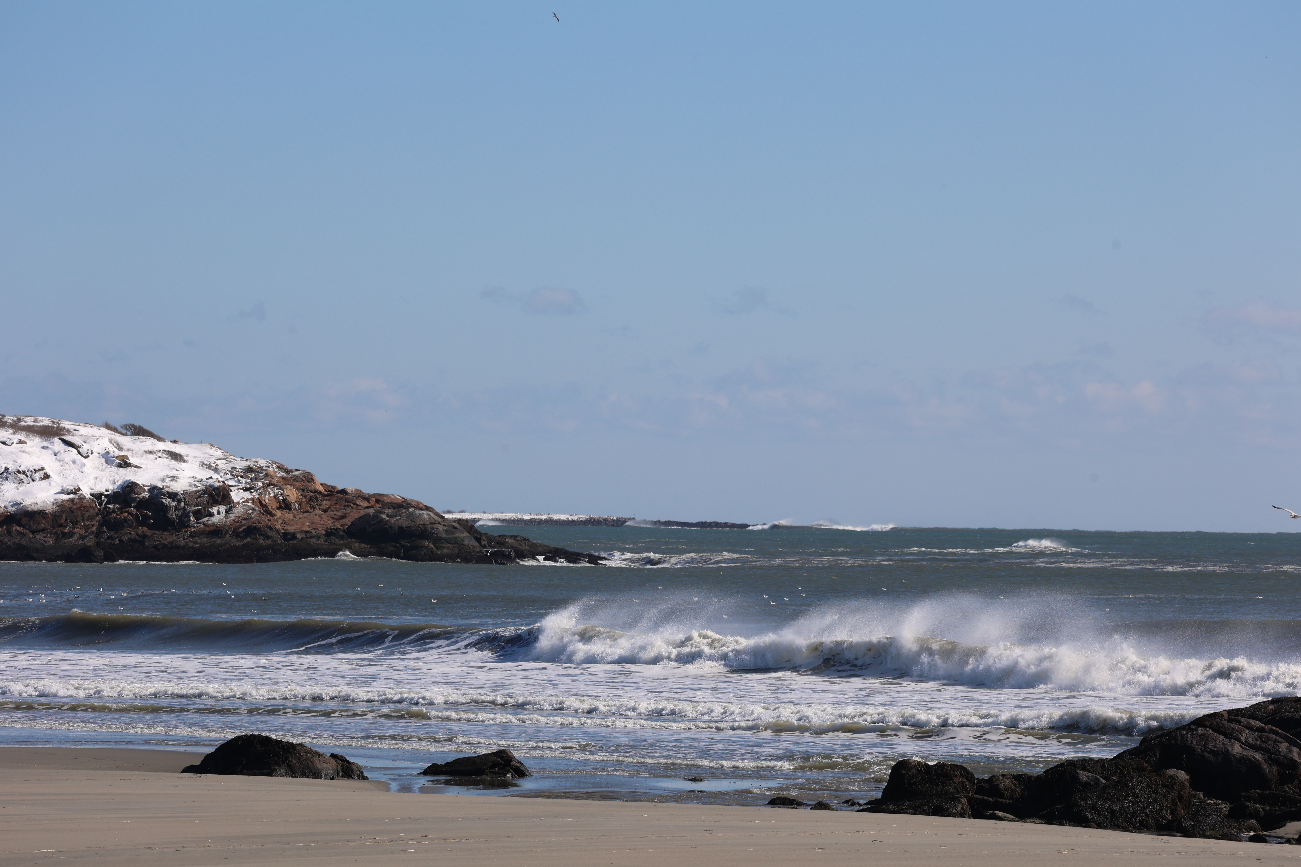 We stopped by Good Harbor Beach to check out the waves following the storm. It was low tide but still beautiful A number of people had their dogs out there enjoying the day. The footbridge was blocked off as well as unplowed. There seemed to be evidence that the storm had breeched the boardwalk but that didn’t stop some from walking across regardless. I expect the barrier is down by now if it’s been deemed safe.