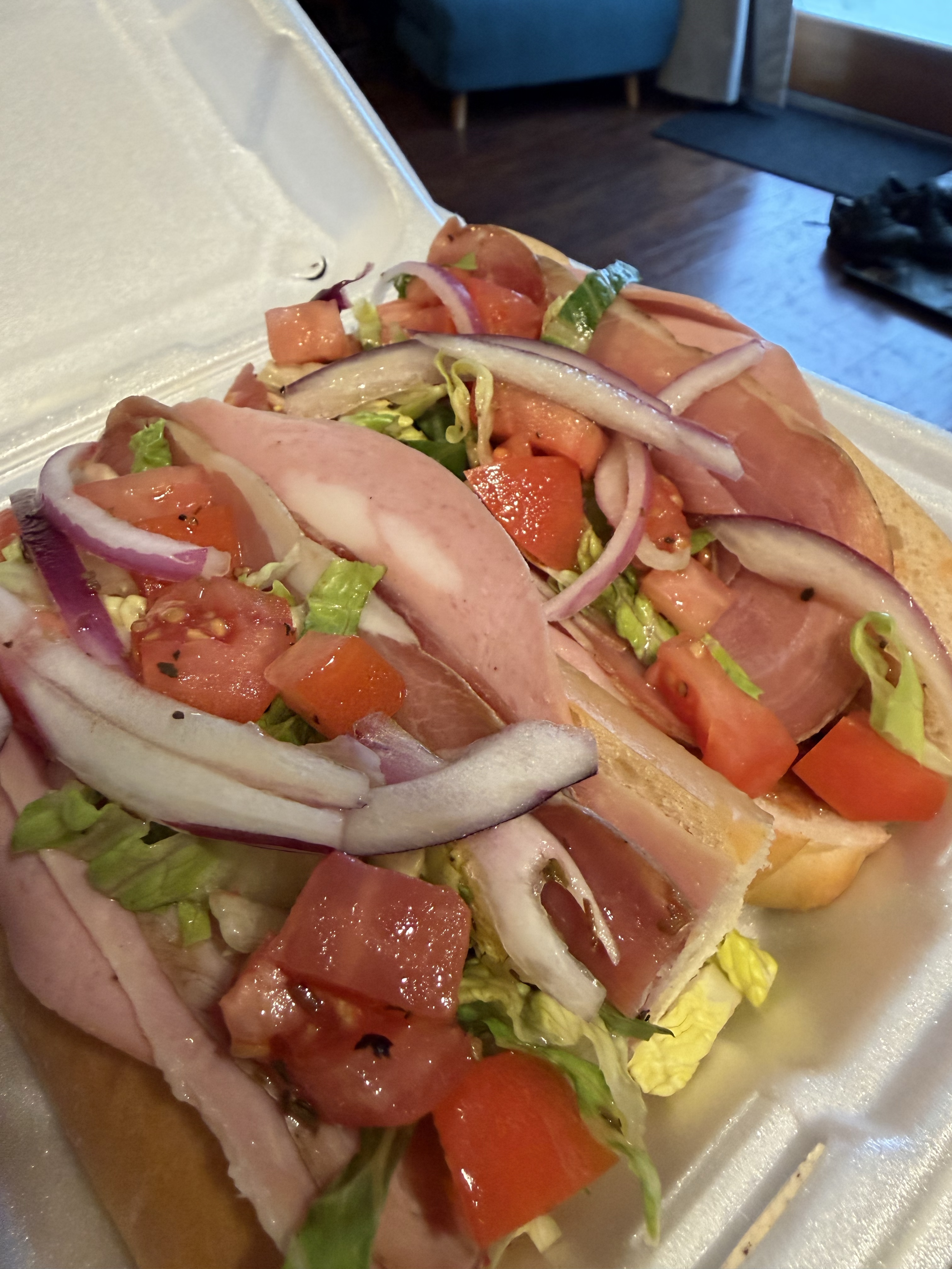 The day before the most recent storm, I decided to stock up on take out in case we lost power or were a little bit stuck at home. Since Poseidon’s is on the way, we choose from their menu offerings. I ordered online (easy peasy) and the pickup was ready right on time. We got a variety of items including pizza, salad, sausage roll, and soup. I have to pat myself on the back for the preplanning because it worked out great. We were among the lucky ones who did not lose power but we felt we should stay off the roads and out of the way of the various work crews. In a bonus surprise, because Poseidon’s is located at the one way traffic lights at Centennial and the Boulevard, it was actualy easier than usual to pull up for pickup, swing around the little block to wait for our turn to go over the bridge. Thank you Poseidon’s! Remember they are open during the brdige work.