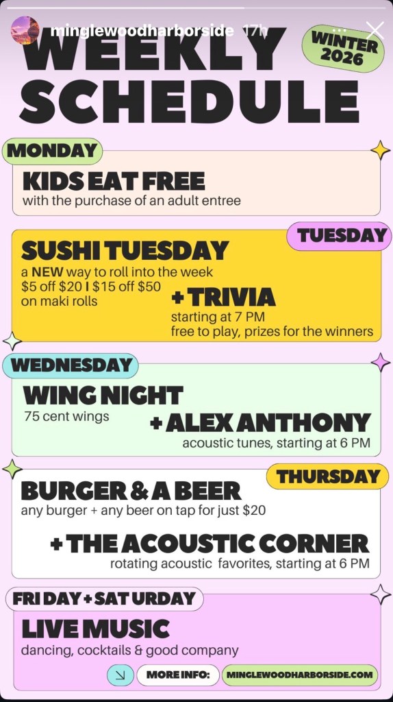 Minglewood Tavern Weekly Schedule