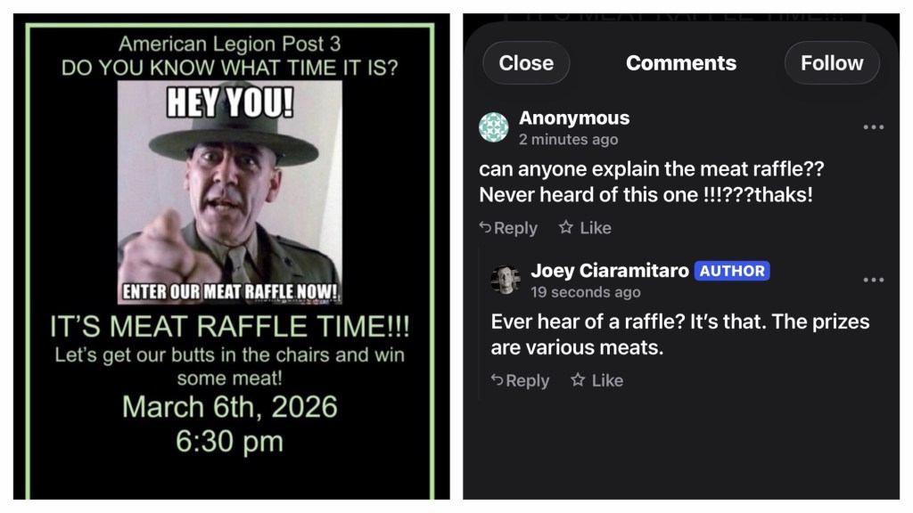 Anonymous wants to know what the meat raffle is.