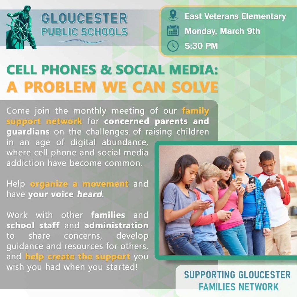 Join us on Monday – we’ll continue to brainstorm what can be done in school and at home to help our kids feel aware of (and in control of) their relationship with tech … and empowered to make better choices. We are fortunate to have GPS working with us to move things in a healthy direction. We need parents and guardians to join in the effort. We can make a difference!
