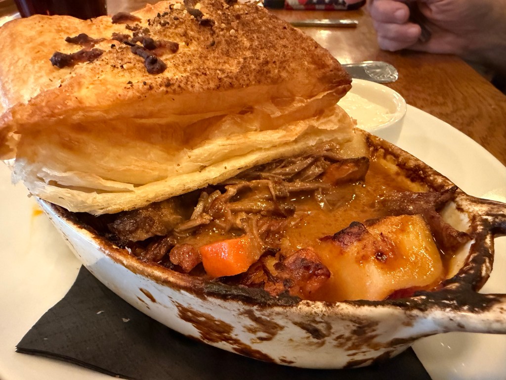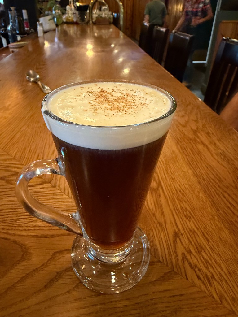 In my March quest for local versions of Irish coffee, we couldn’t miss The James on Main Street in Essex. We stopped by for a little dinner and topped it off with Irish coffee and carrot cake. Jim had the short rib and ale pie which was super satisfying. He also enjoyed his carrot cake, but another local carrot cake takes first place in his opinion. As for the Irish coffee, no one asked about Baileys or whipped cream which is fine. It was hot and “sturdy” and I will have another someday. Slainte!