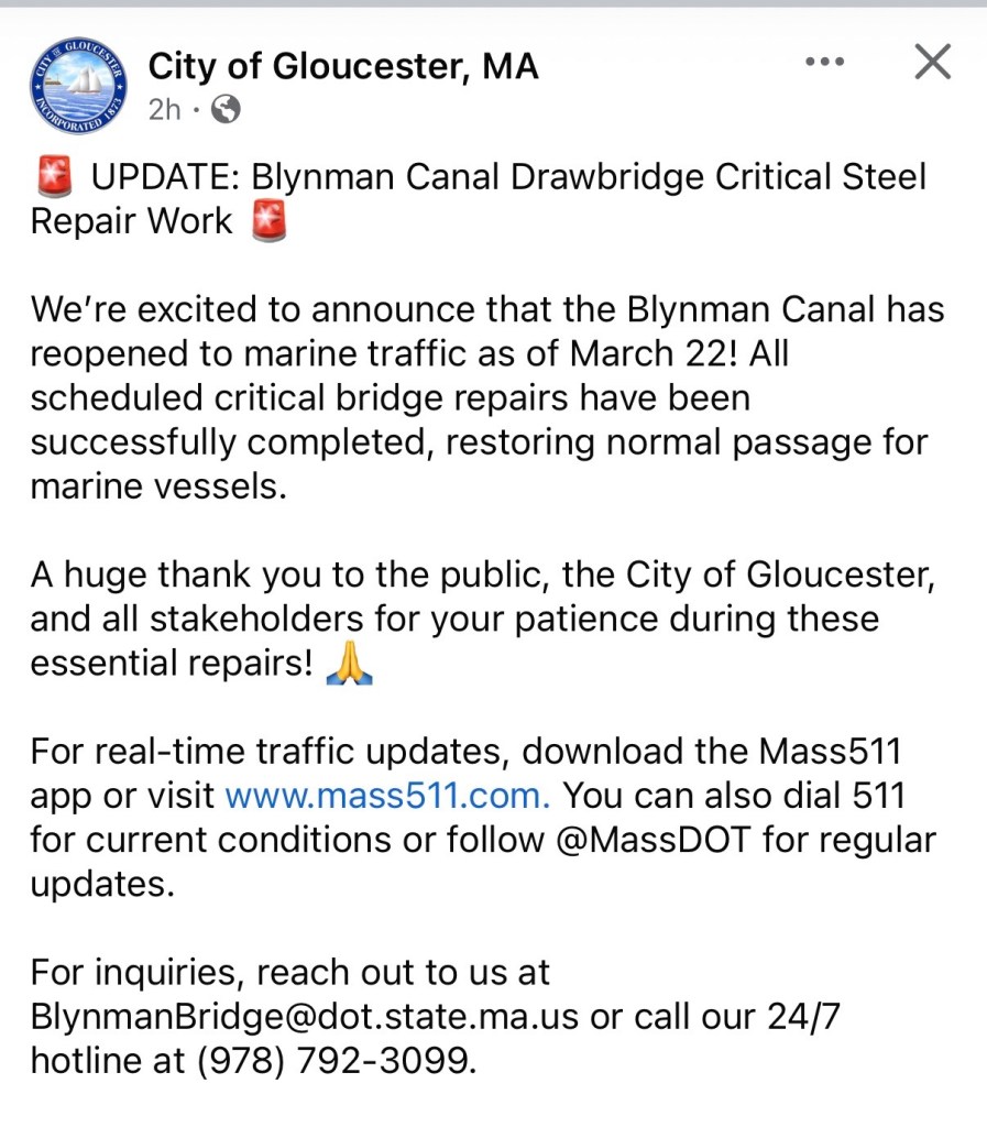 Update from City on Blynman Marine Traffic